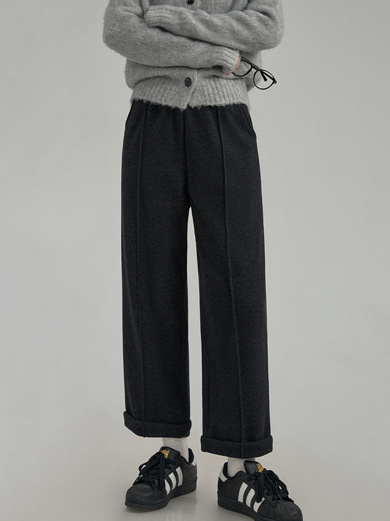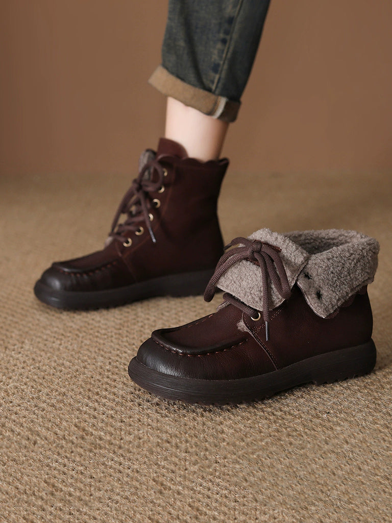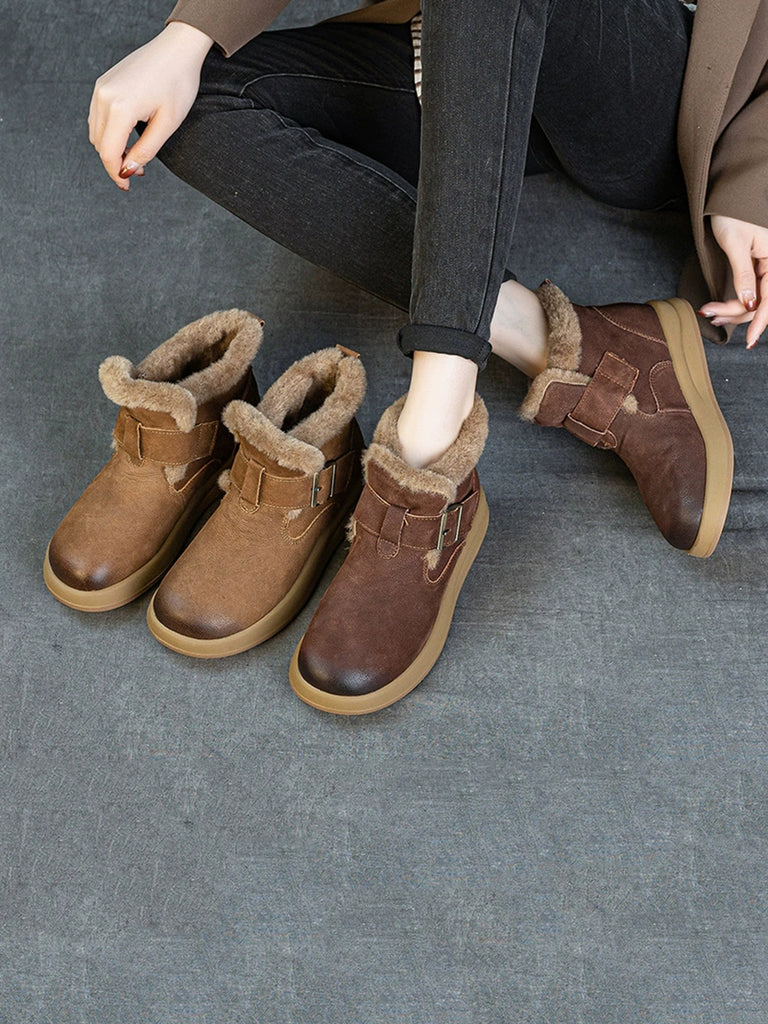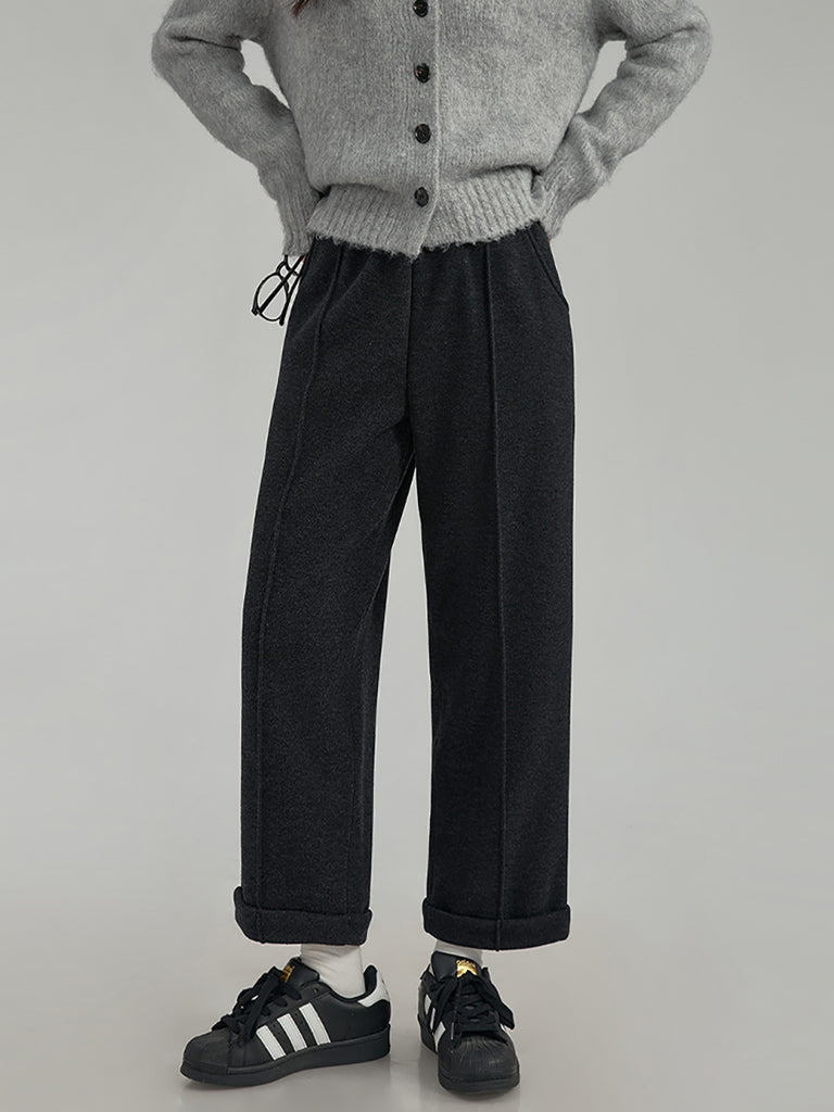 Women Winter Retro Plaid Fleece-lined Wide-leg Pants