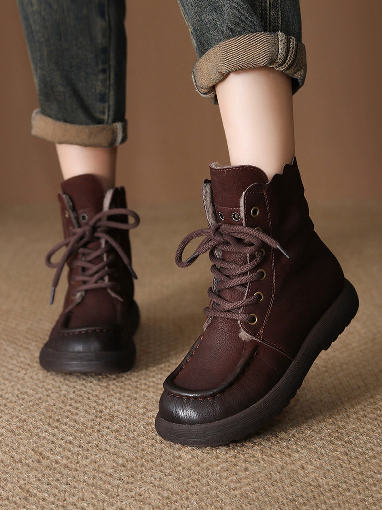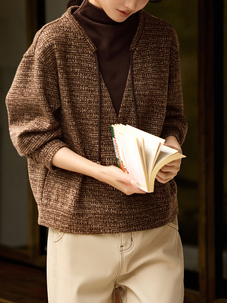 Women Autumn Retro Pure Color O-Neck Cotton Blouse