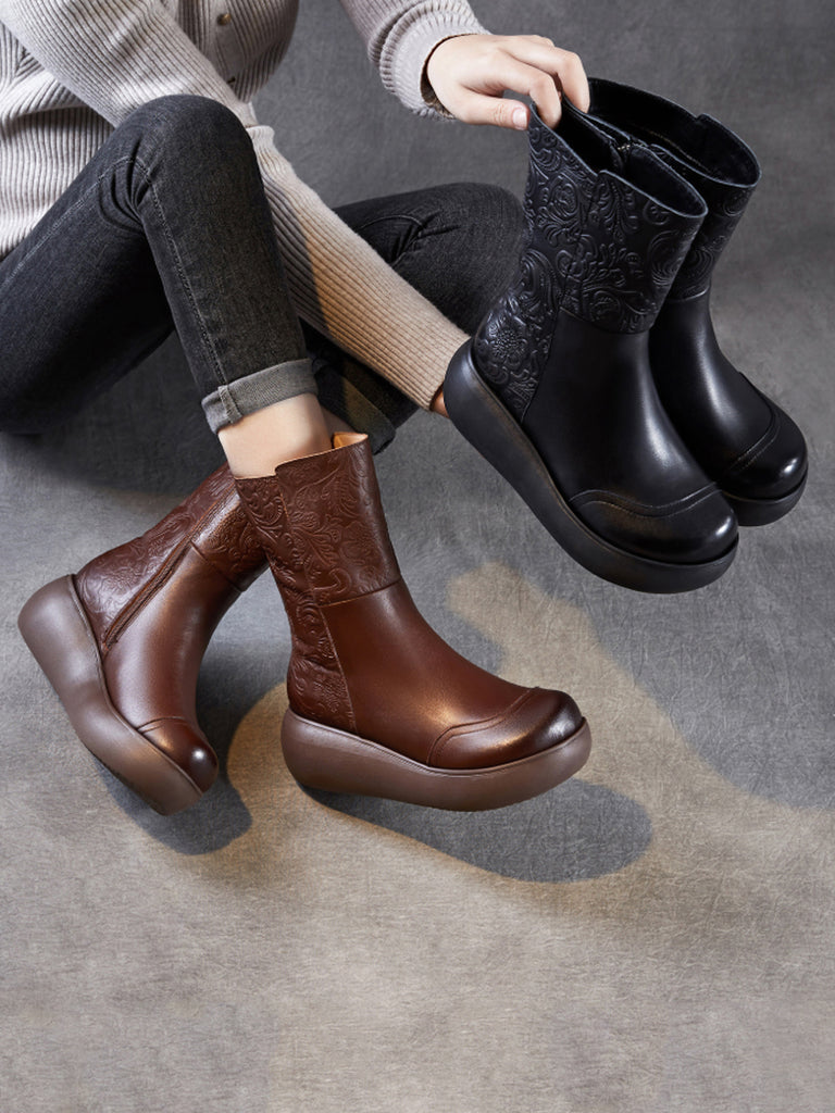 5 Pairs Winter Ethnic Flower Mid Heel Socks