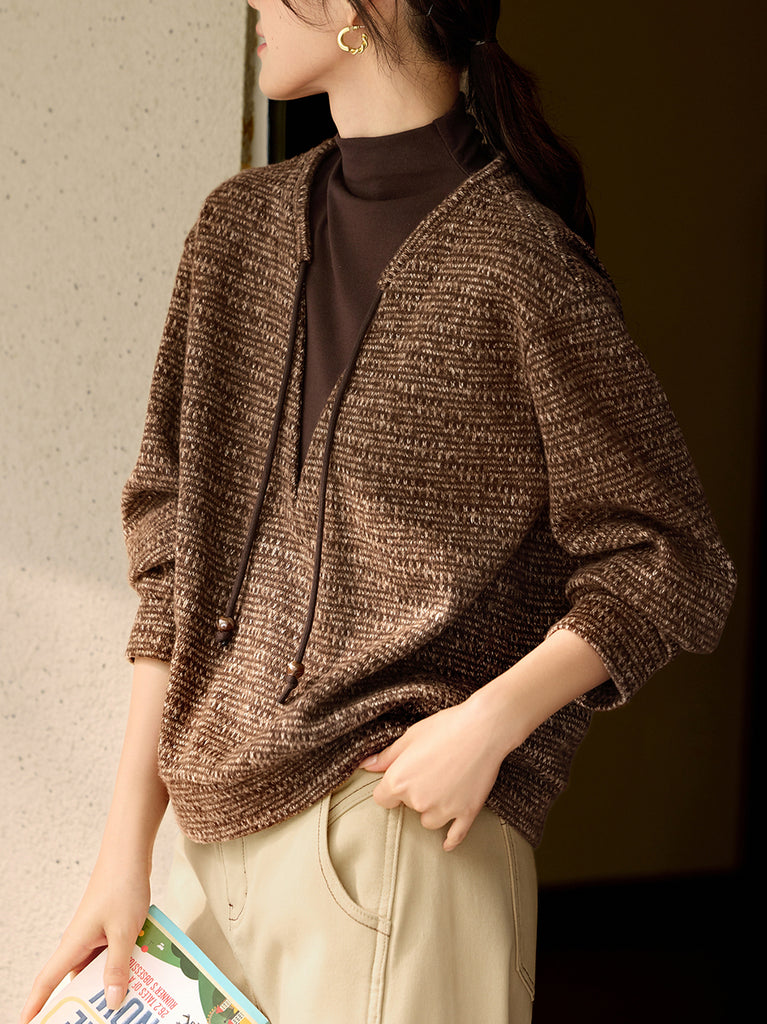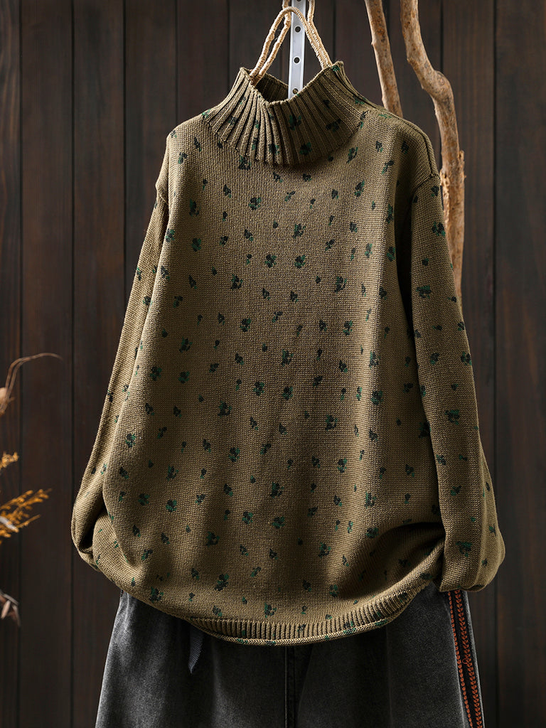 Women Autumn Artsy Floral Half-Turtleneck Sweater