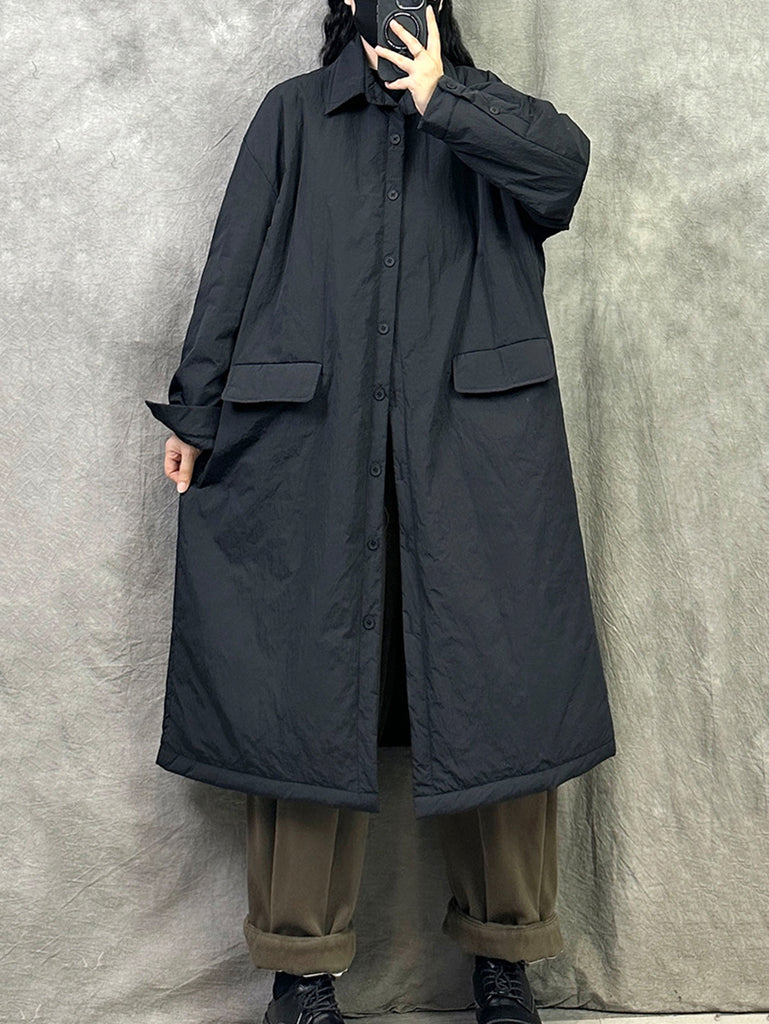 Women Winter Pure Color Turn-down Collar Padded Overcoat
