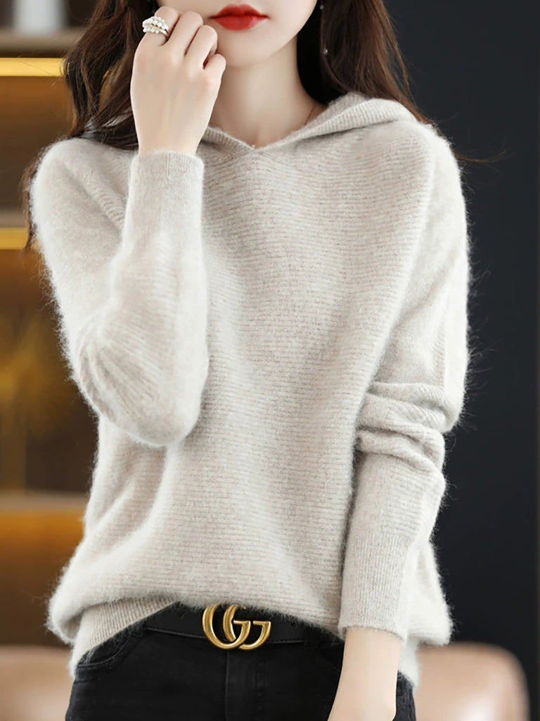 Women Winter Pure Color Hooded Sweater