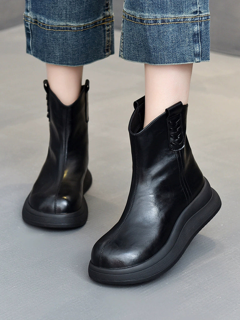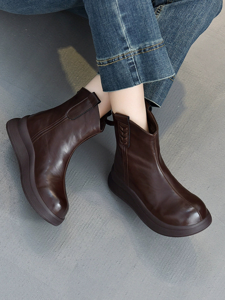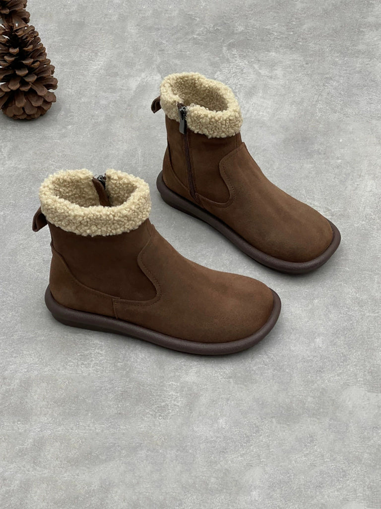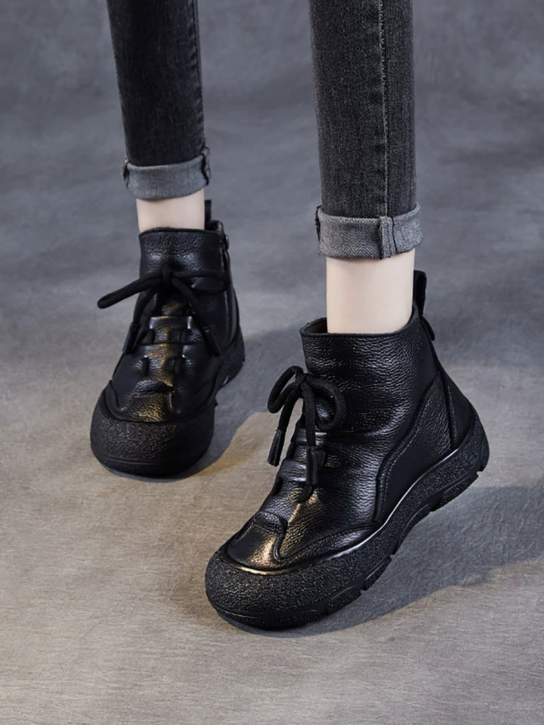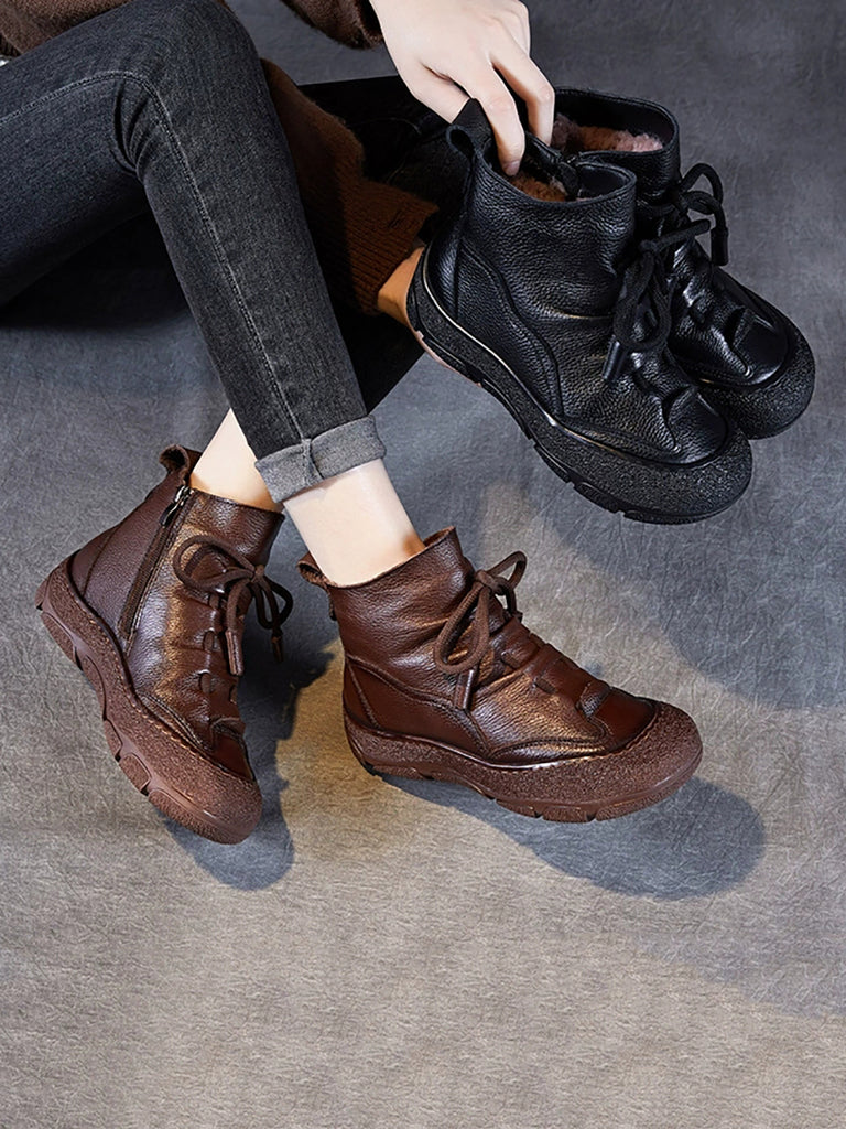 Women Vintage Genuine Leather Fleece-lined Boots