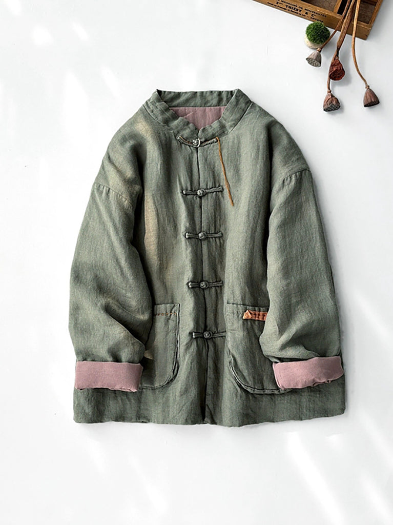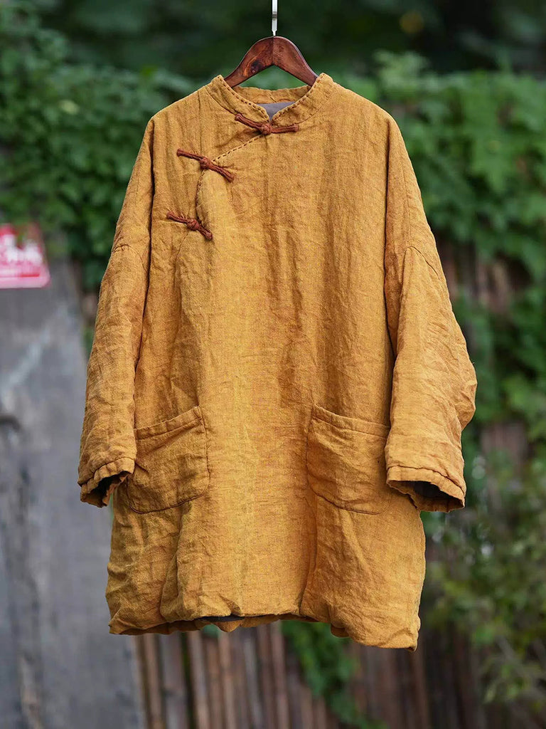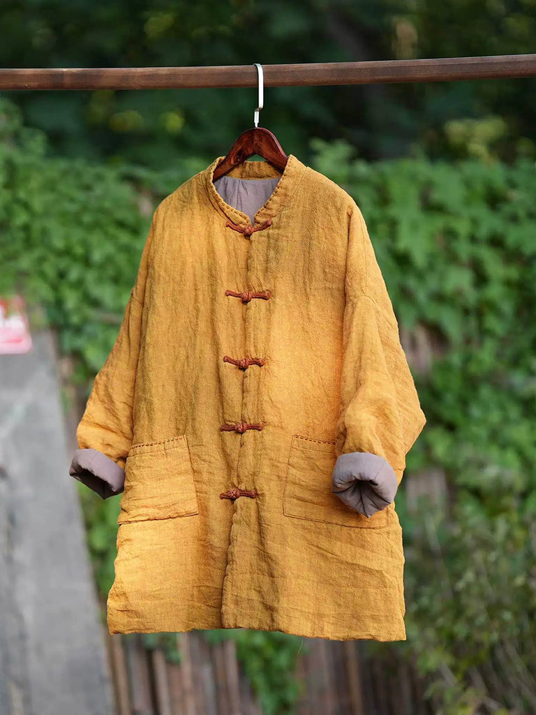 Women Winter Ethnic Pure Color Stand Collar Linen Padded Coat