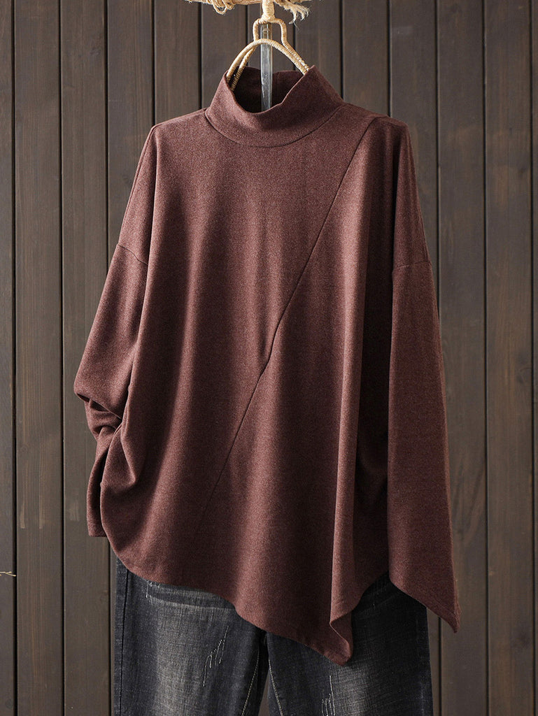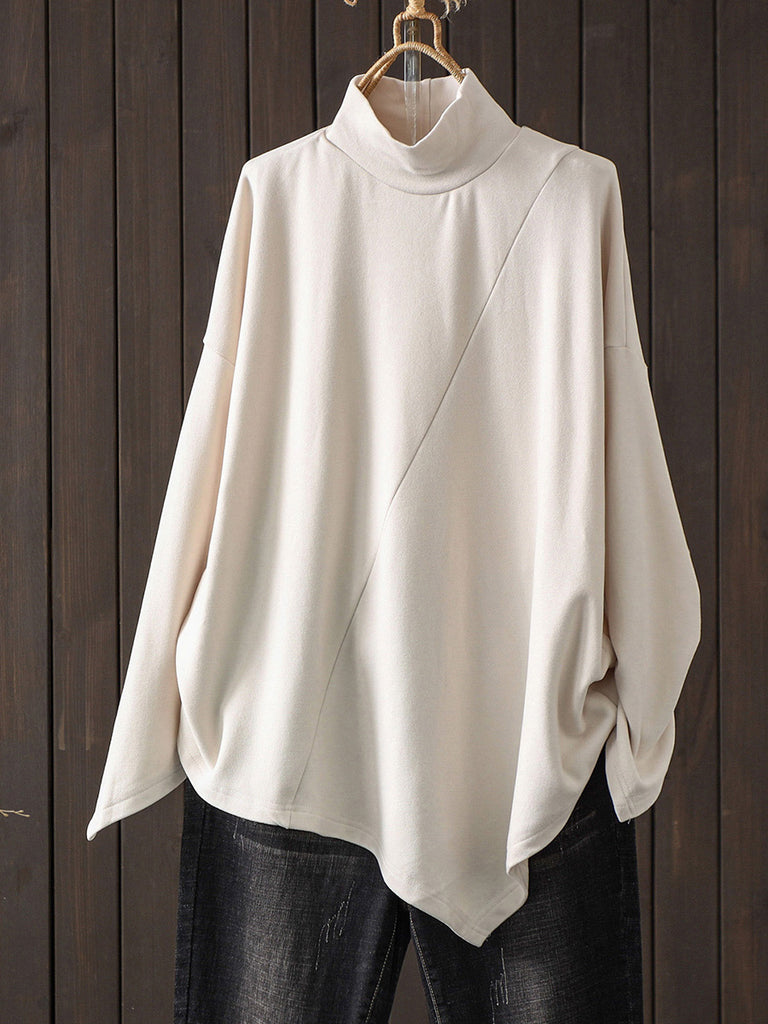 Women Casual Autumn Pure Color Turtleneck Blouse