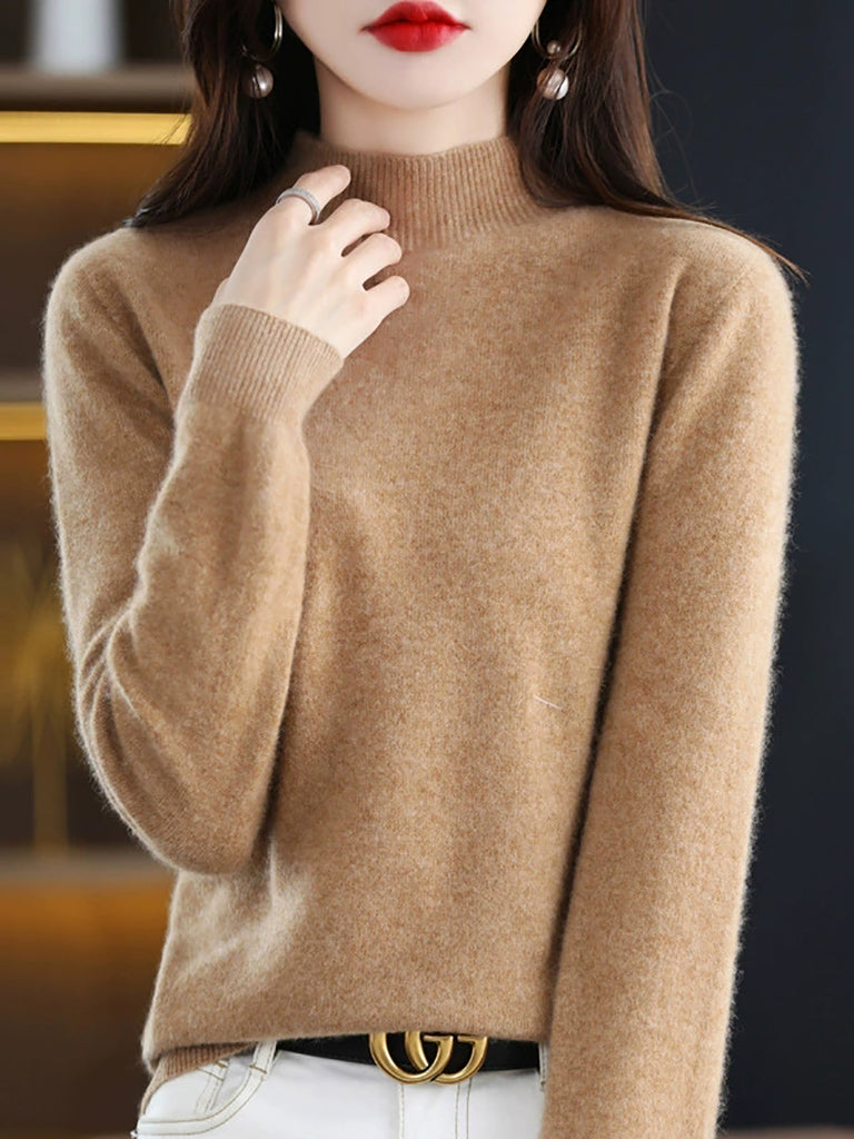 Women Winter Half-Turtleneck Knitted Wool Sweater