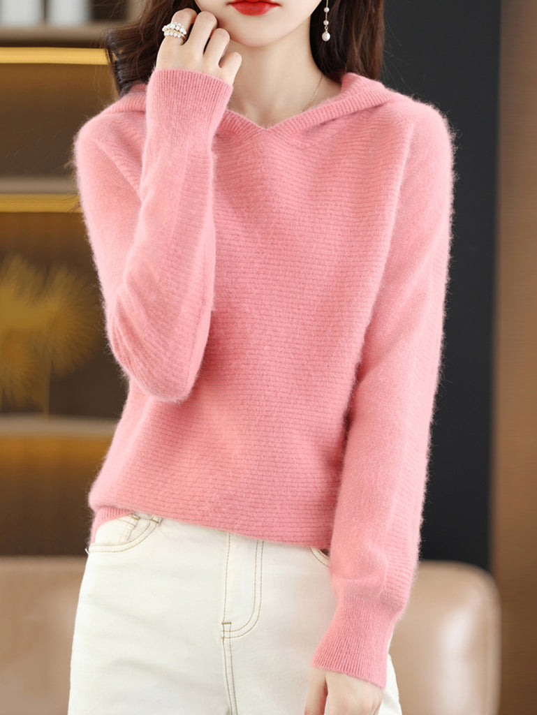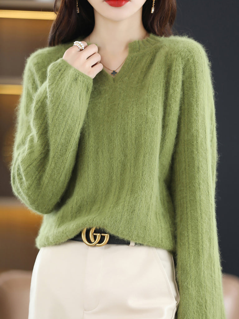 Women Winter Pure Color V-Neck Sweater