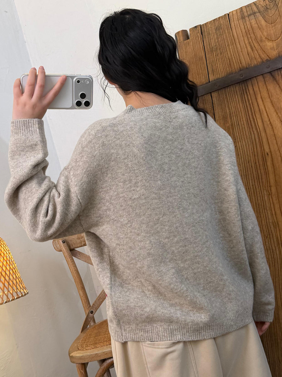 Women Autumn Artsy Apple O-Neck Knitted Sweater