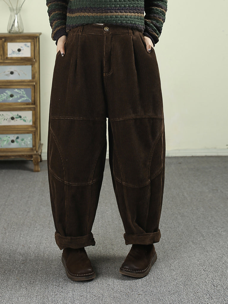 Women Winter Retro Pure Color Fleece-lined Harem Pants