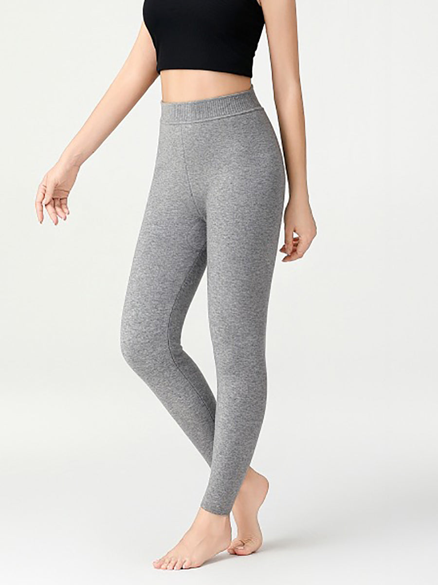 Winter Warm Pure Color Fleece-lined High Waist Leggings