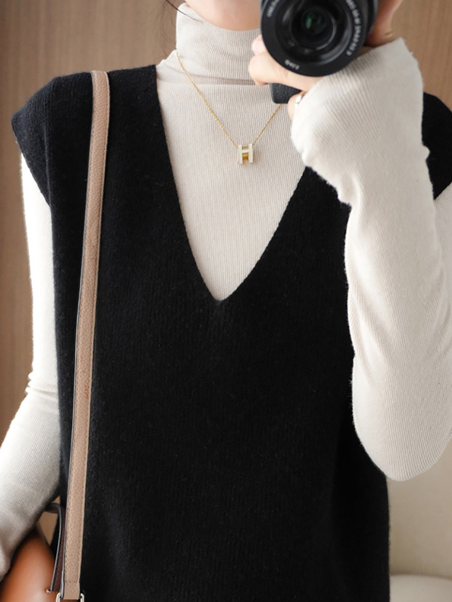 Women Autumn Casual Pure Color V-Neck Knitted Vest