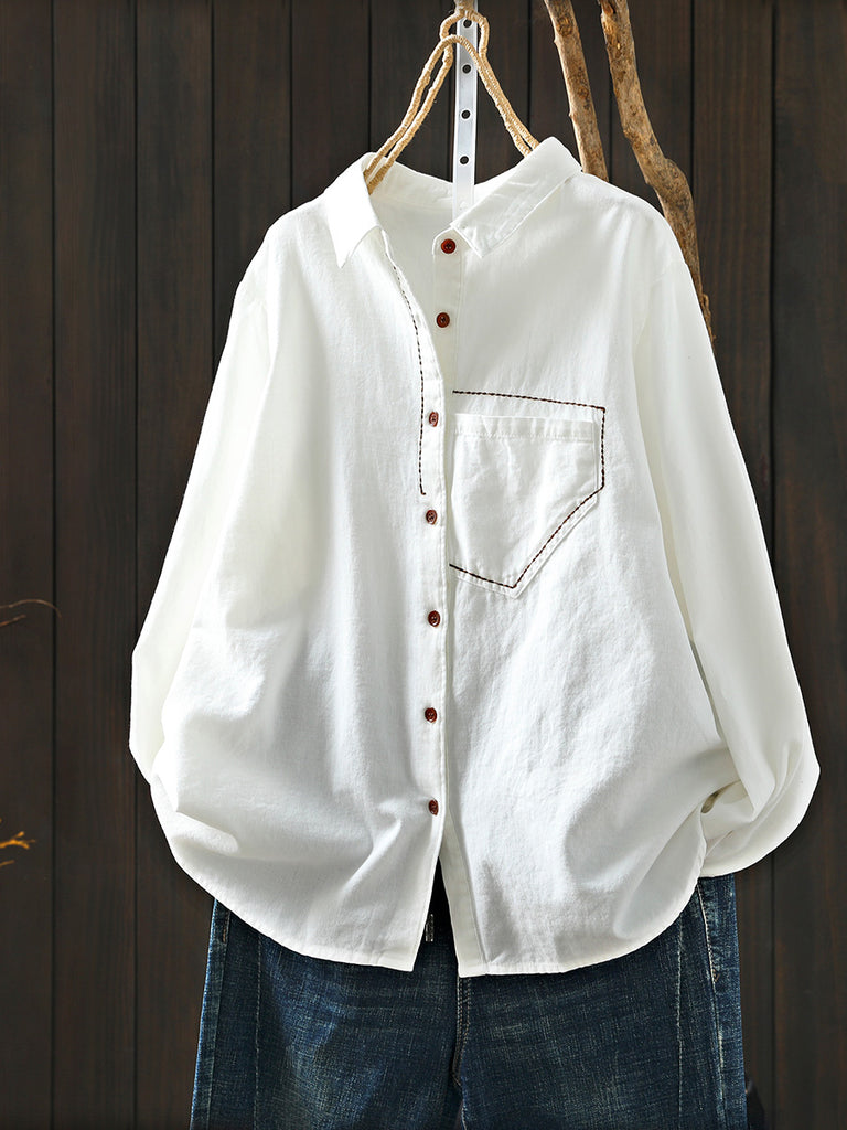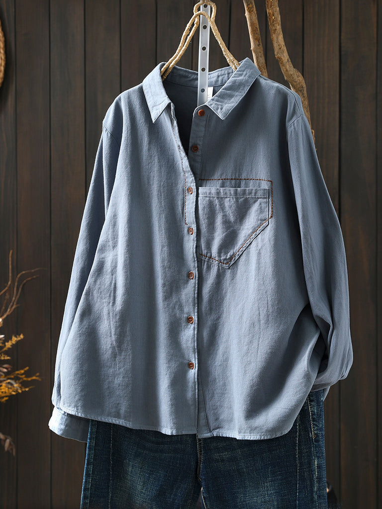Women Winter Artsy Pure Color Turn-down Collar Blouse