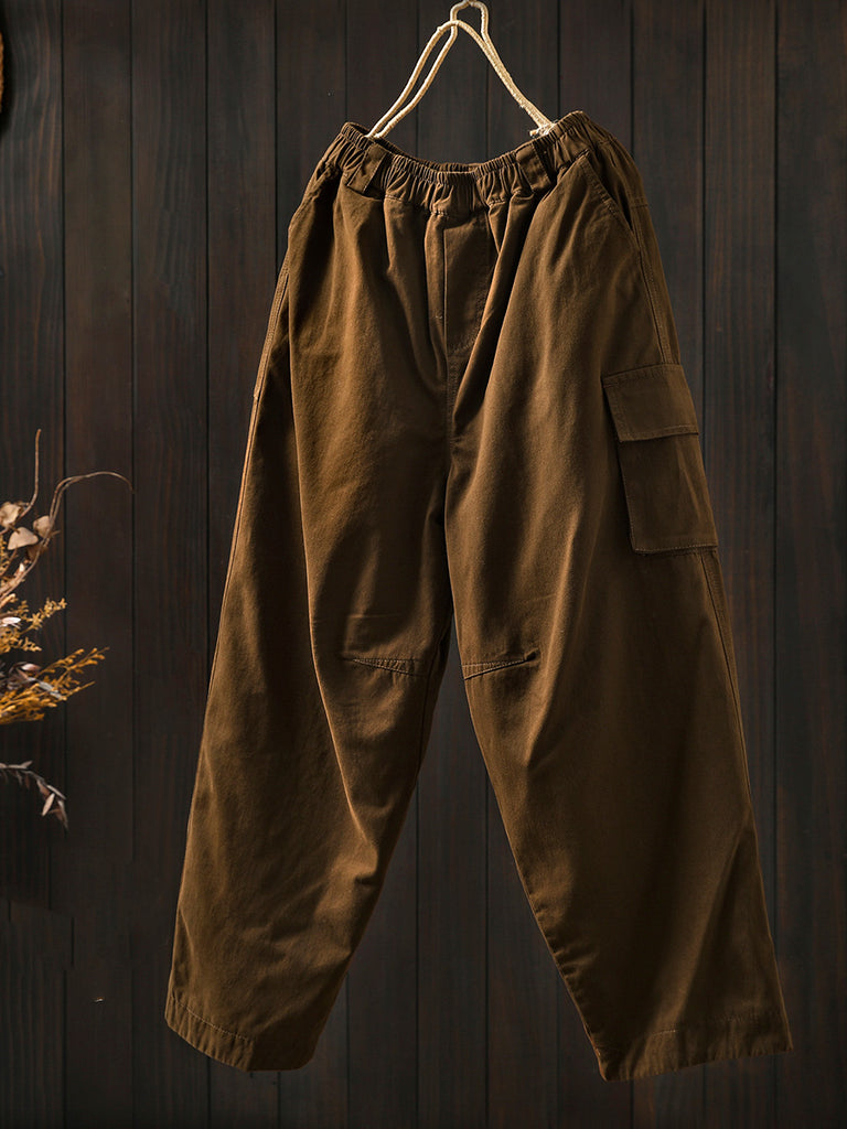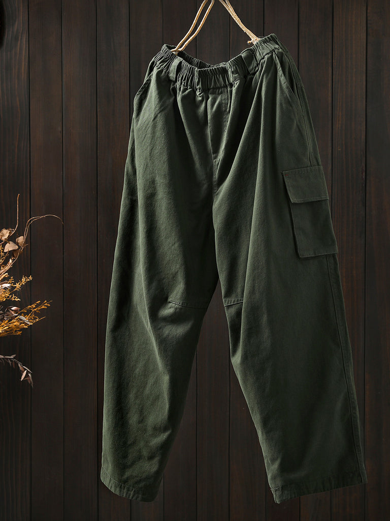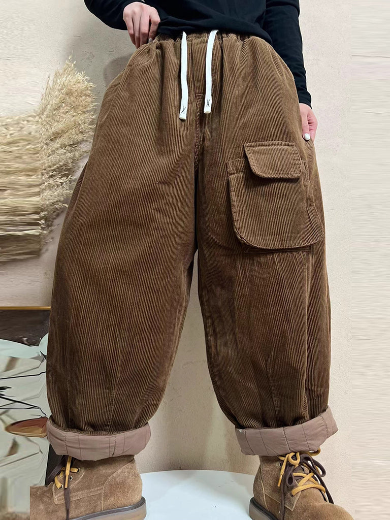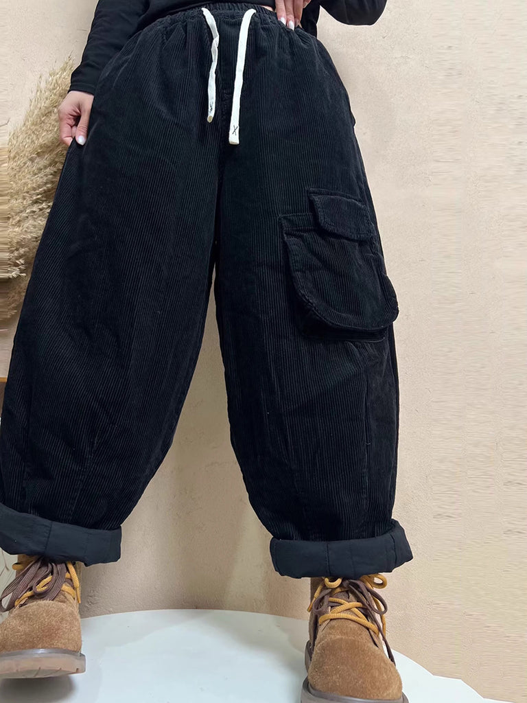 Women Winter Retro Pure Color Fleece-lined Harem Pants