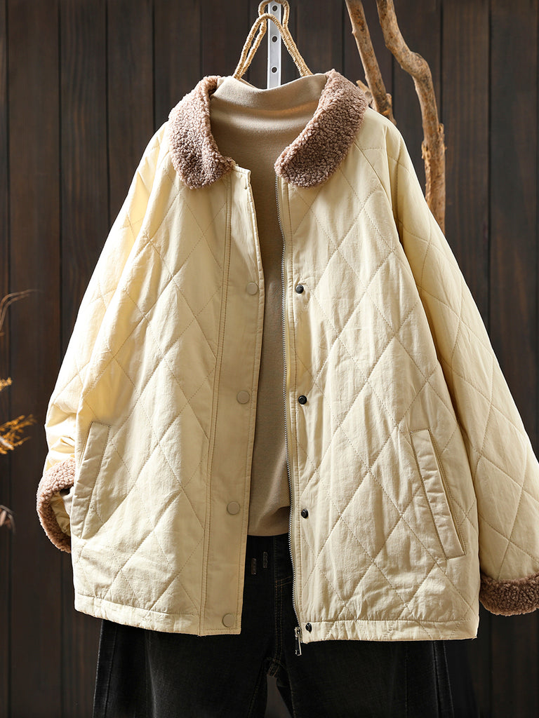 Women Winter Retro Fleece Spliced Turn-down Collar Coat
