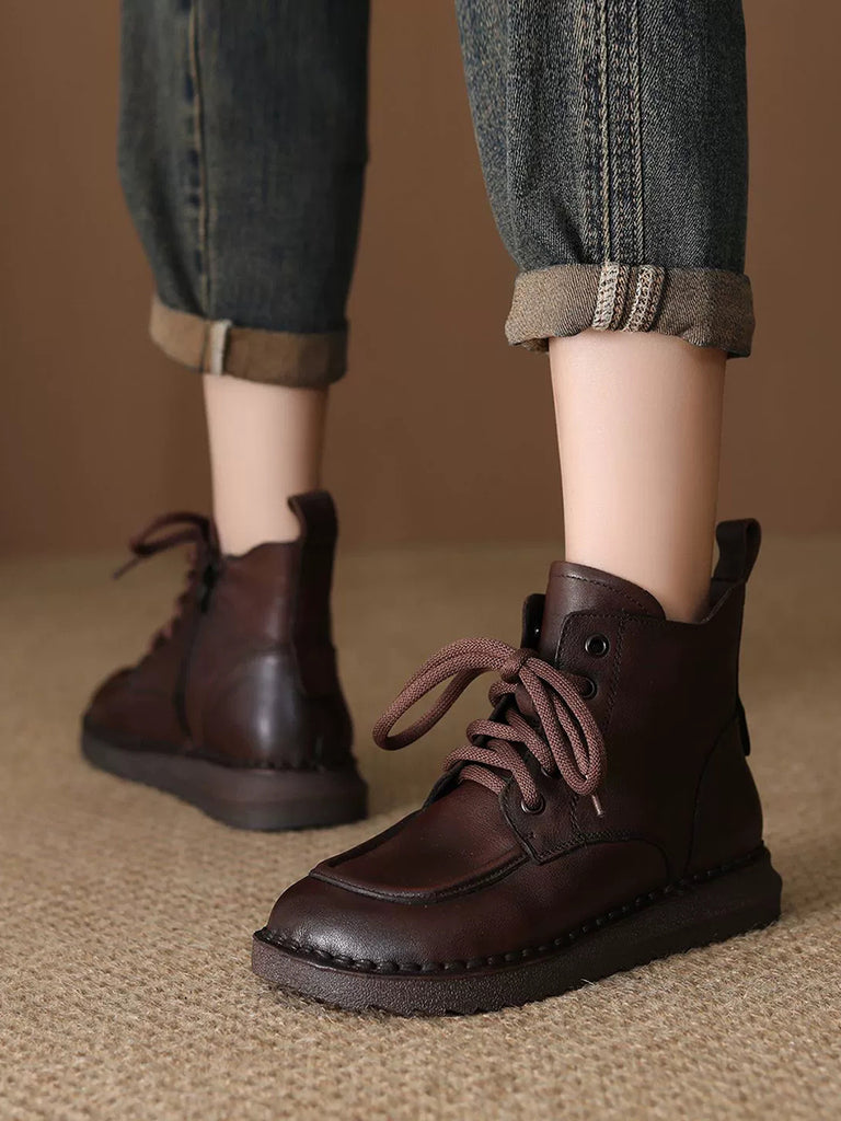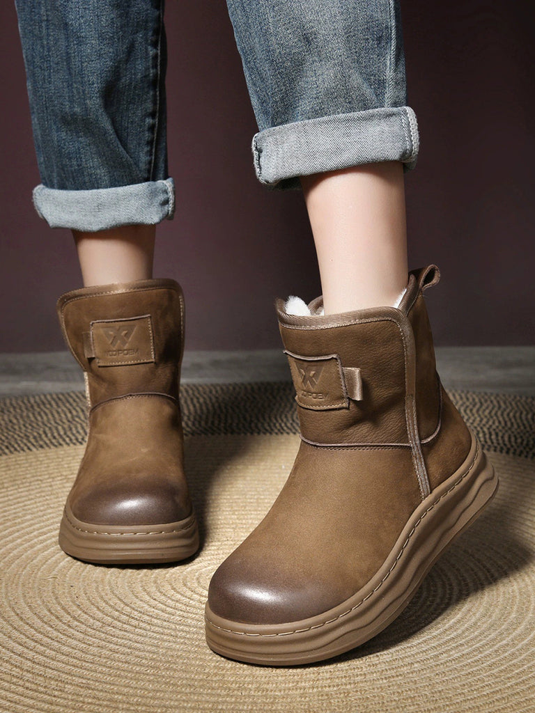 Women Winter Genuine Leather Fleece-lined Platform Boots