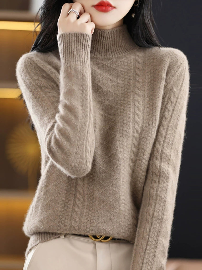 Women Autumn Artsy Pure Color Half-Turtleneck Sweater