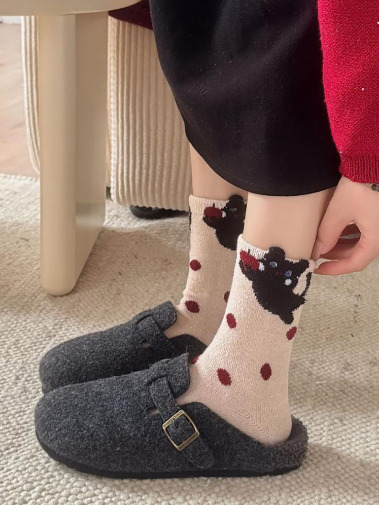 4 Pairs Winter Cute Cat Stripe Warm Socks