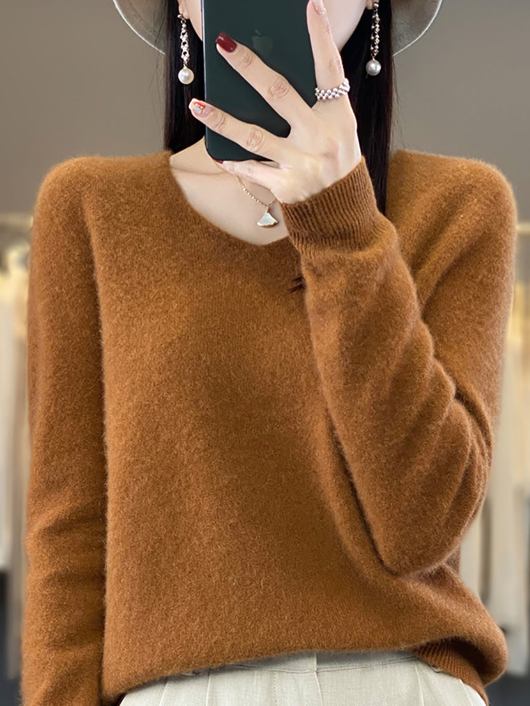 Women Winter Pure Color Knitted O-Neck Cardigan Sweater