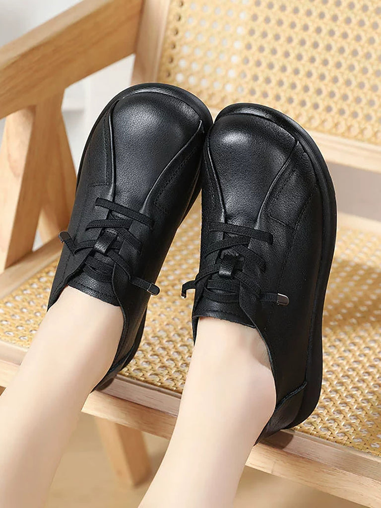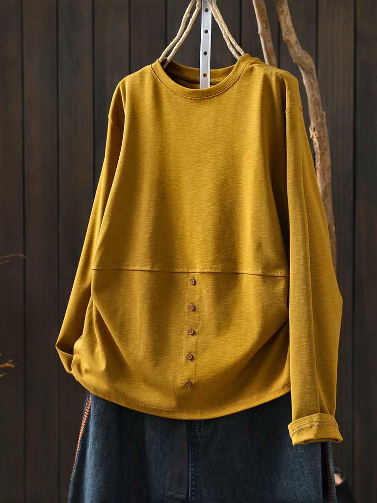 Women Artsy Autumn Pure Color Cotton O-Neck Blouse