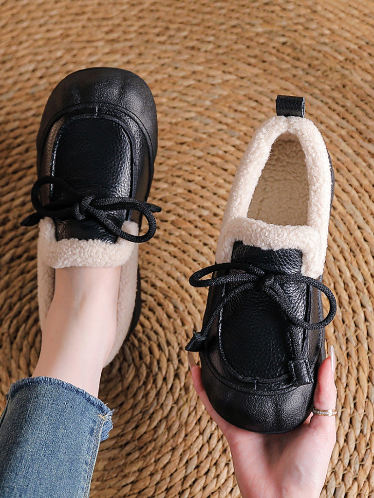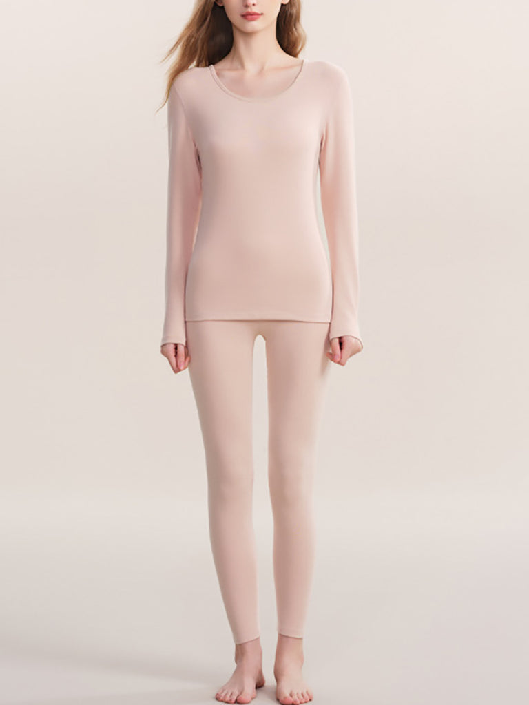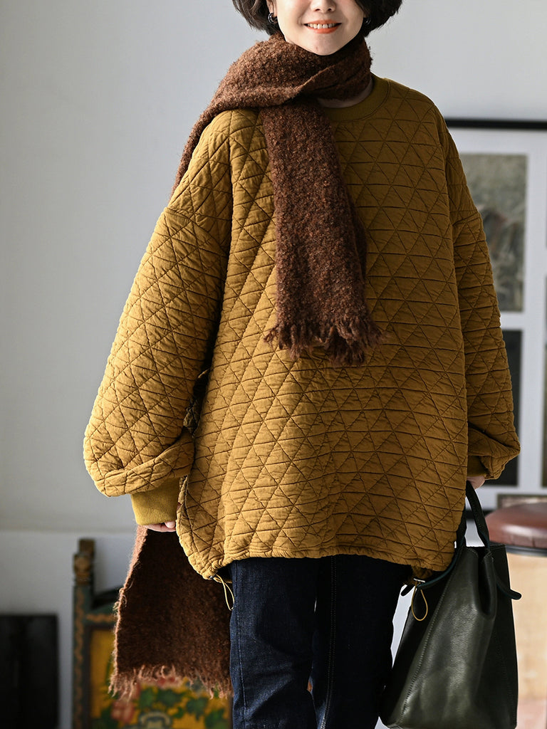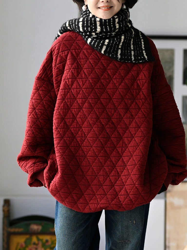 Women Winter Artsy Pure Color O-Neck Cotton Blouse