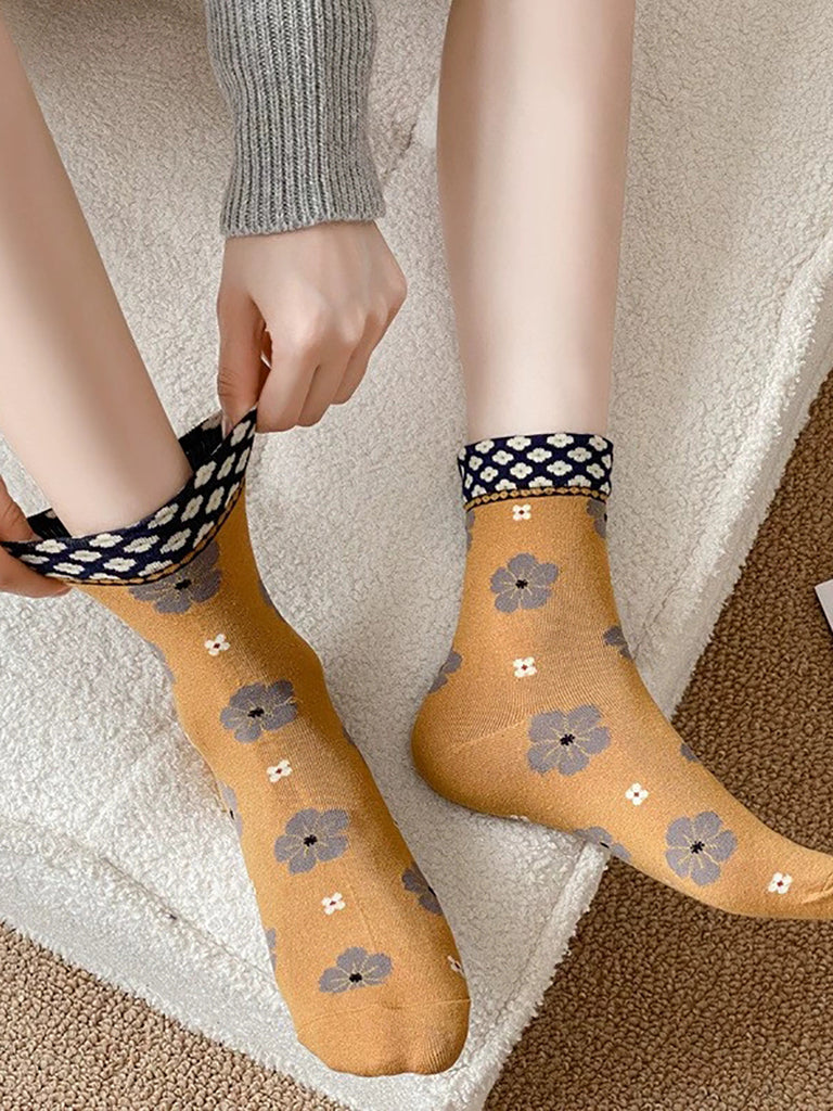 Women Winter Artsy O-Neck Floral 100%Cotton Blouse