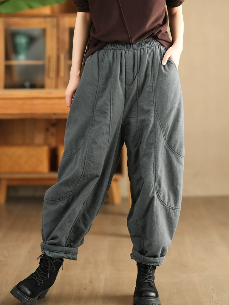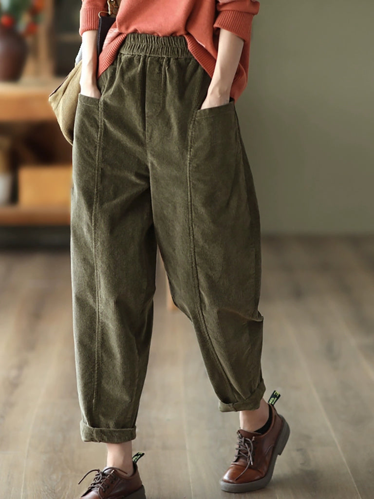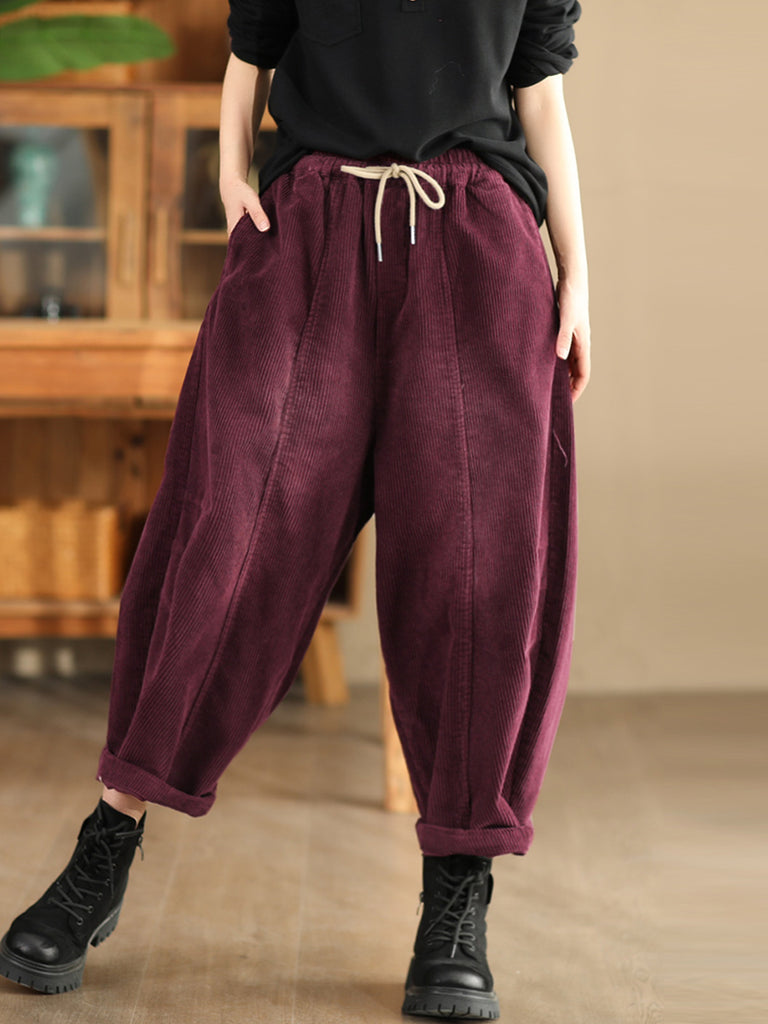 Women Autumn Retro Pure Color Corduroy Harem Pants