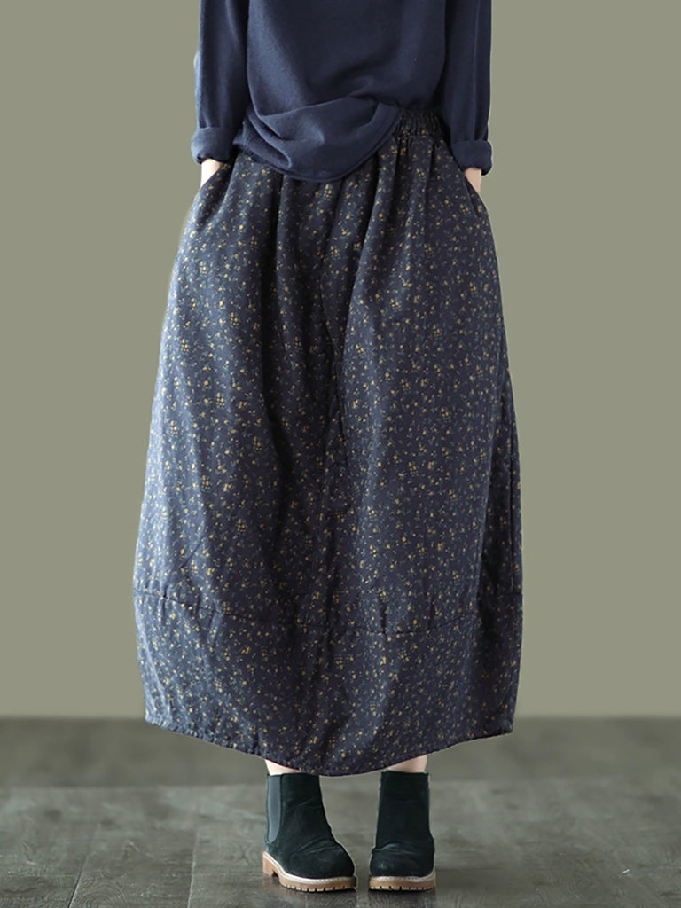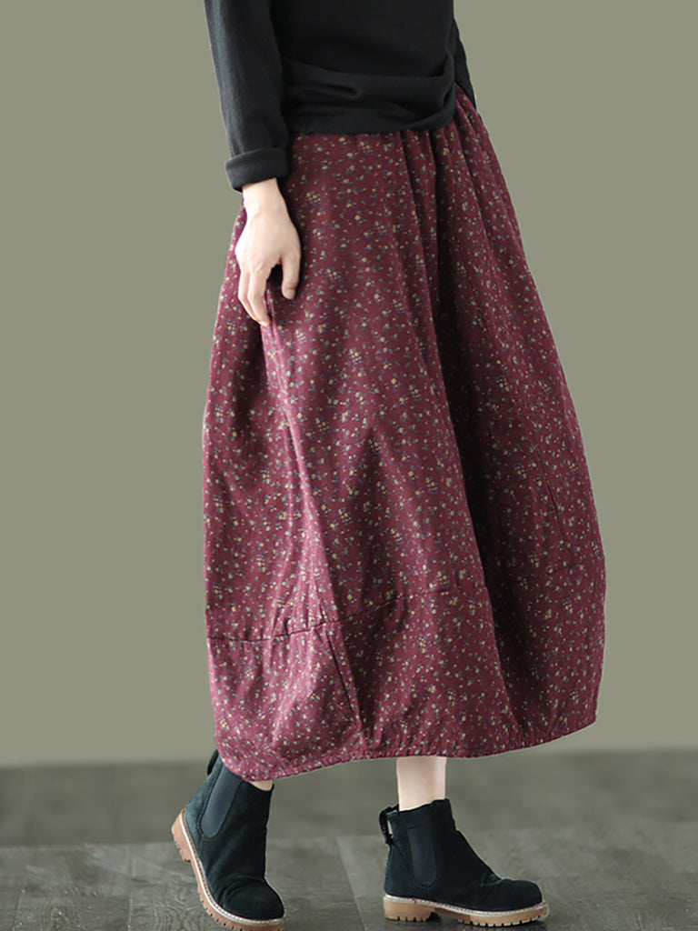 Women Winter Retro Floral Stripe O-Neck Padded Coat