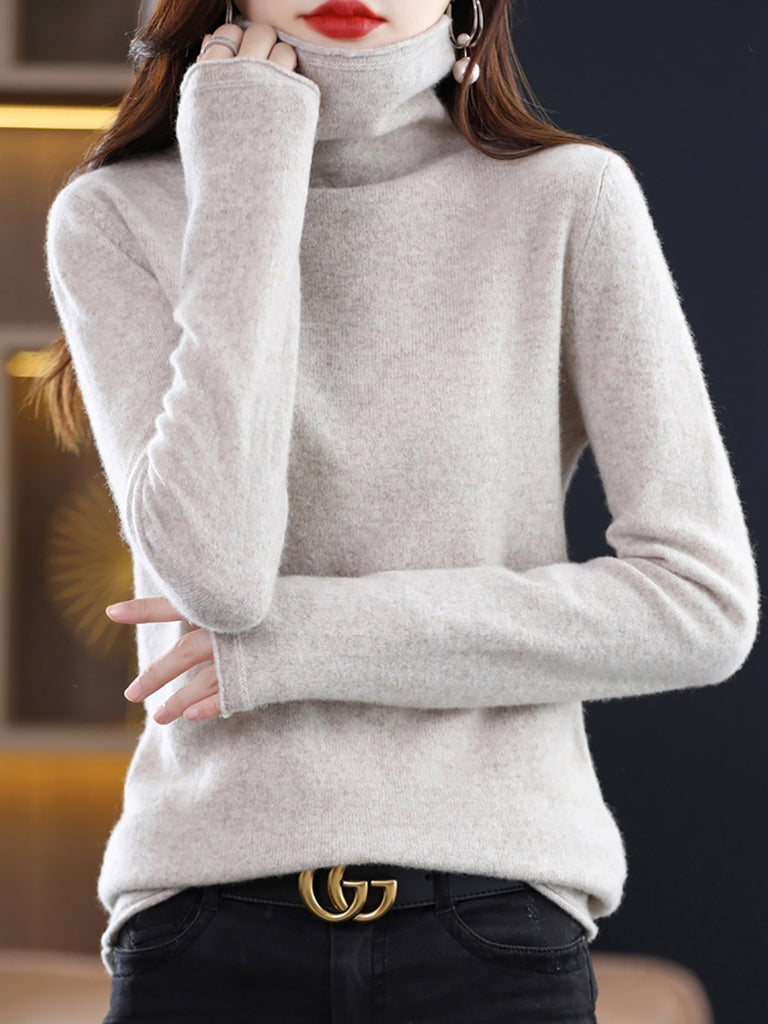 Women Autumn Pure Color Wool Turtleneck Sweater