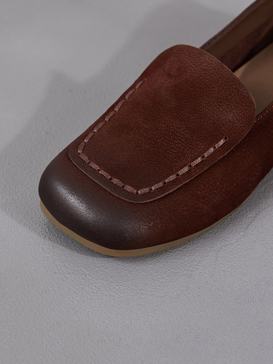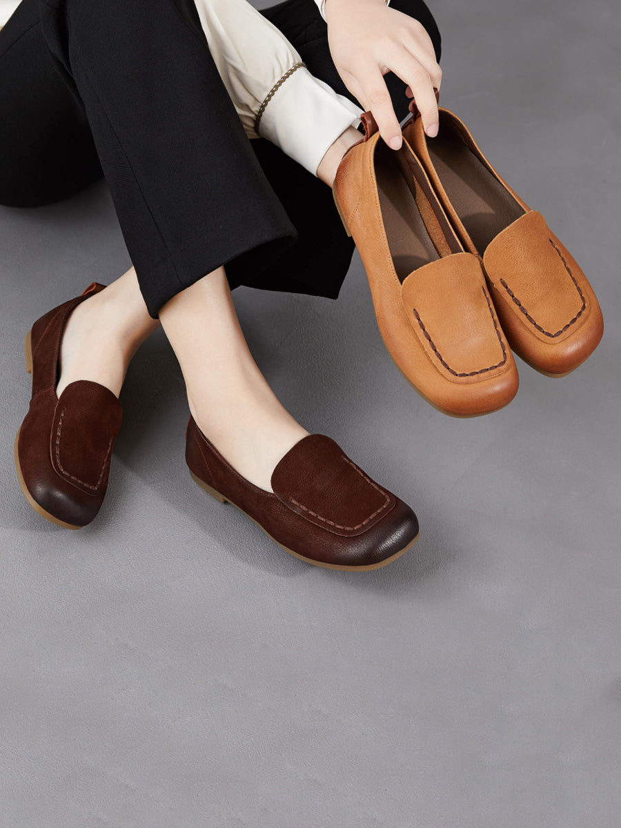 Women Spring Geuine Leather Spliced Square Toe Shoes
