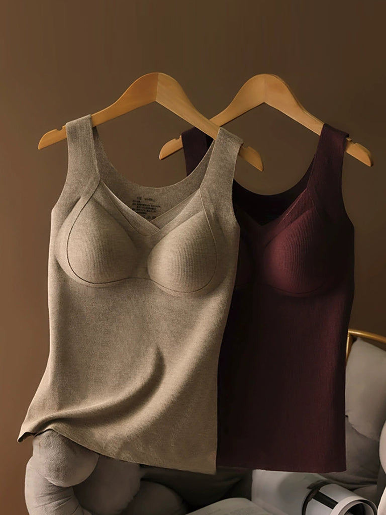 Women Autumn Warm Pure Color U-Neck Base Vest