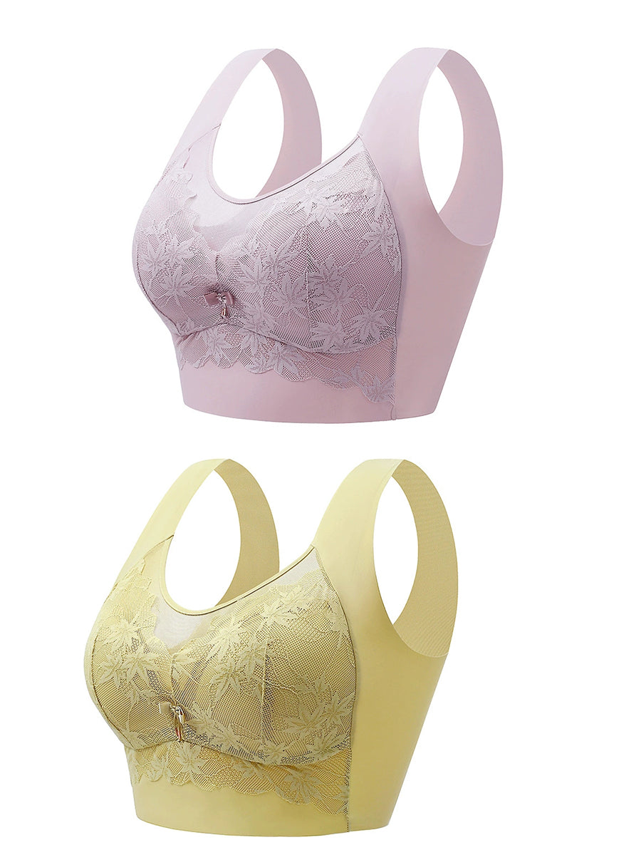 2 Pieces Women Artsy Lace One-piece Wireless Bra