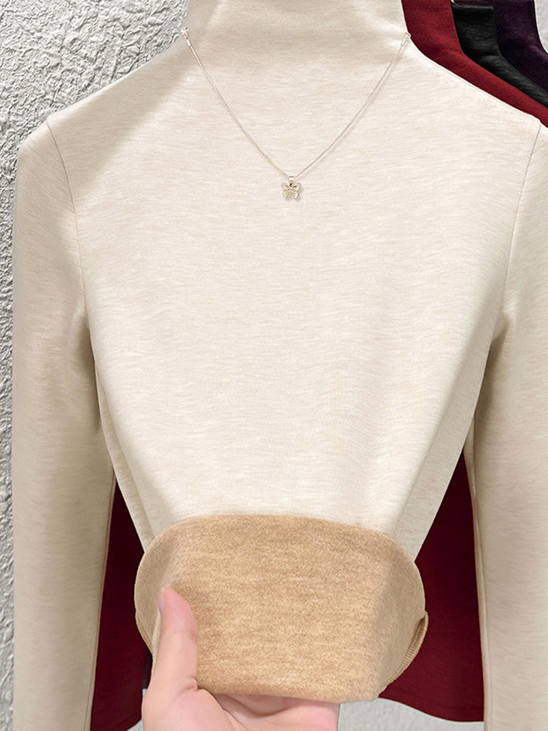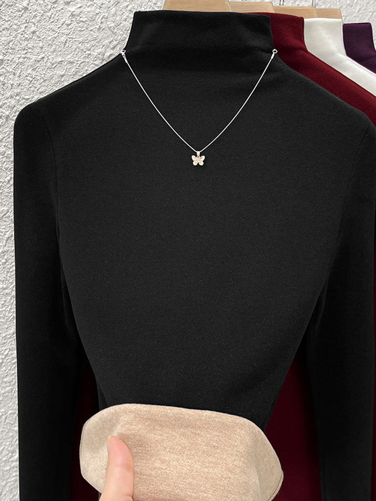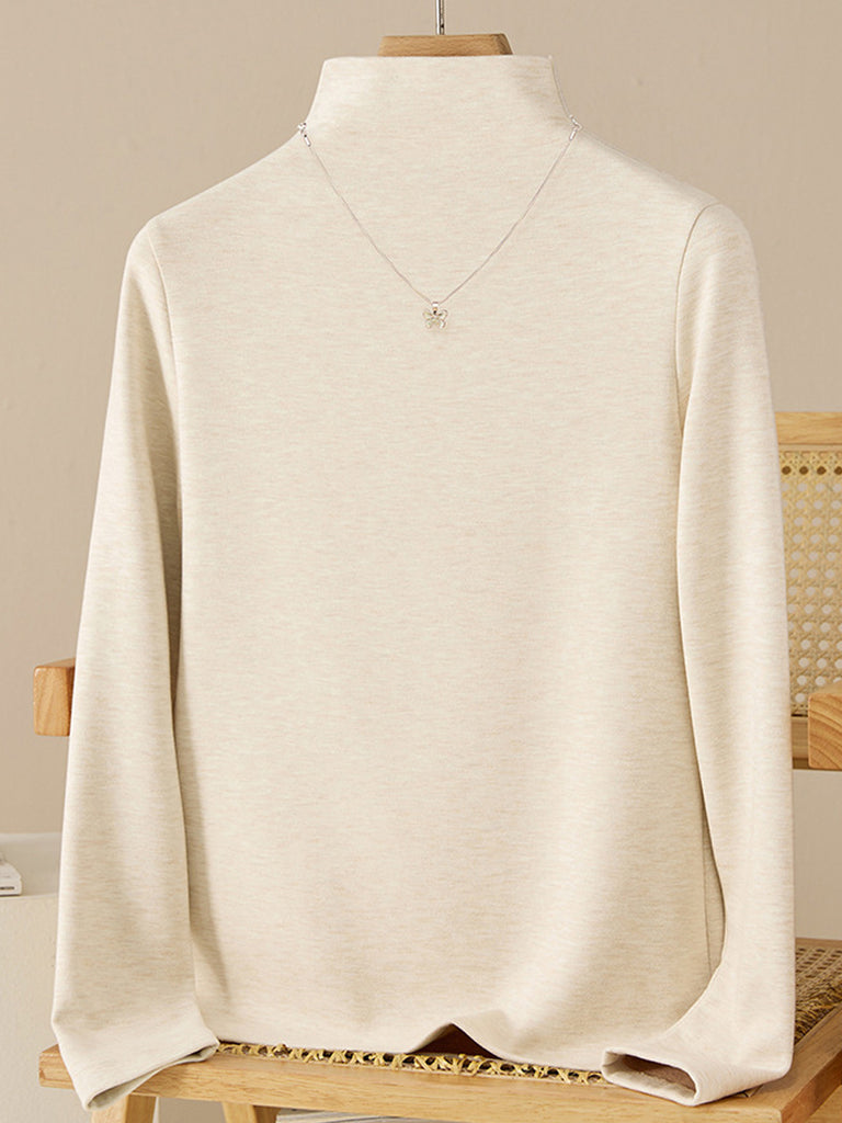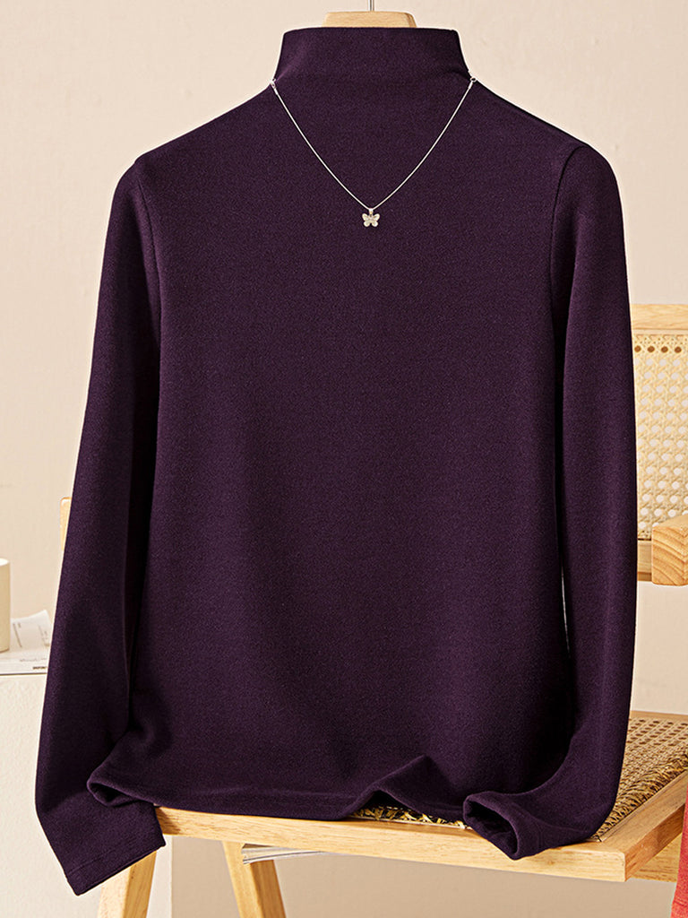Women Casual Autumn Pure Color Half-Turtleneck Blouse