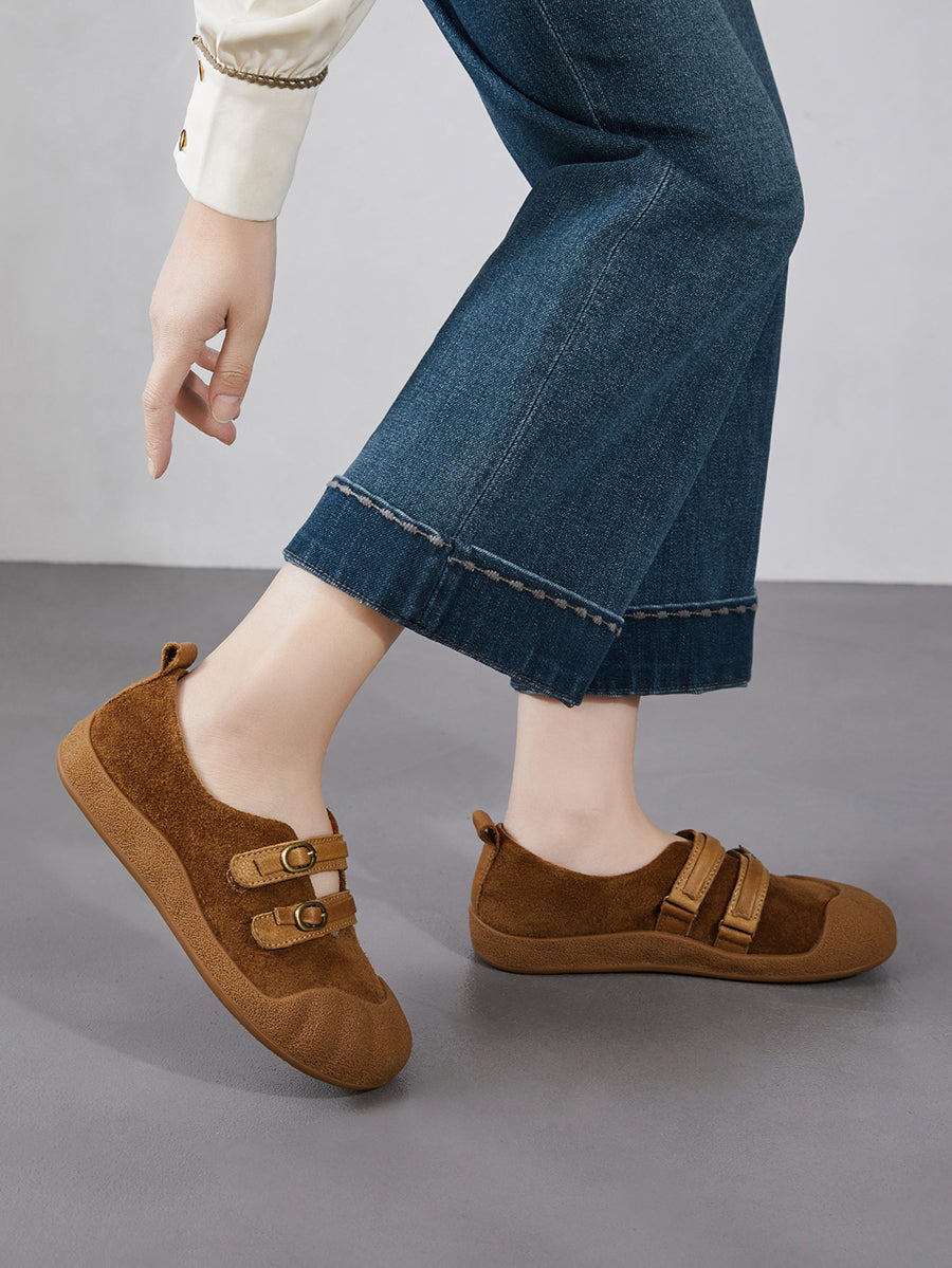 Women Spring Retro Genuine Leather Flat Shoes