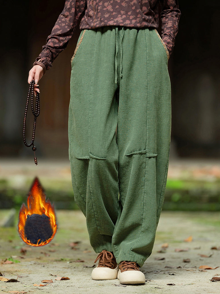 Plus Size Women Winter Retro Solid Spliced Padded Harem Pants