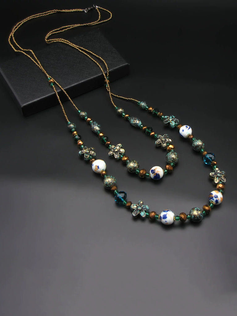 Women Bohemia Bead Ceramic Weave Sweater Necklace
