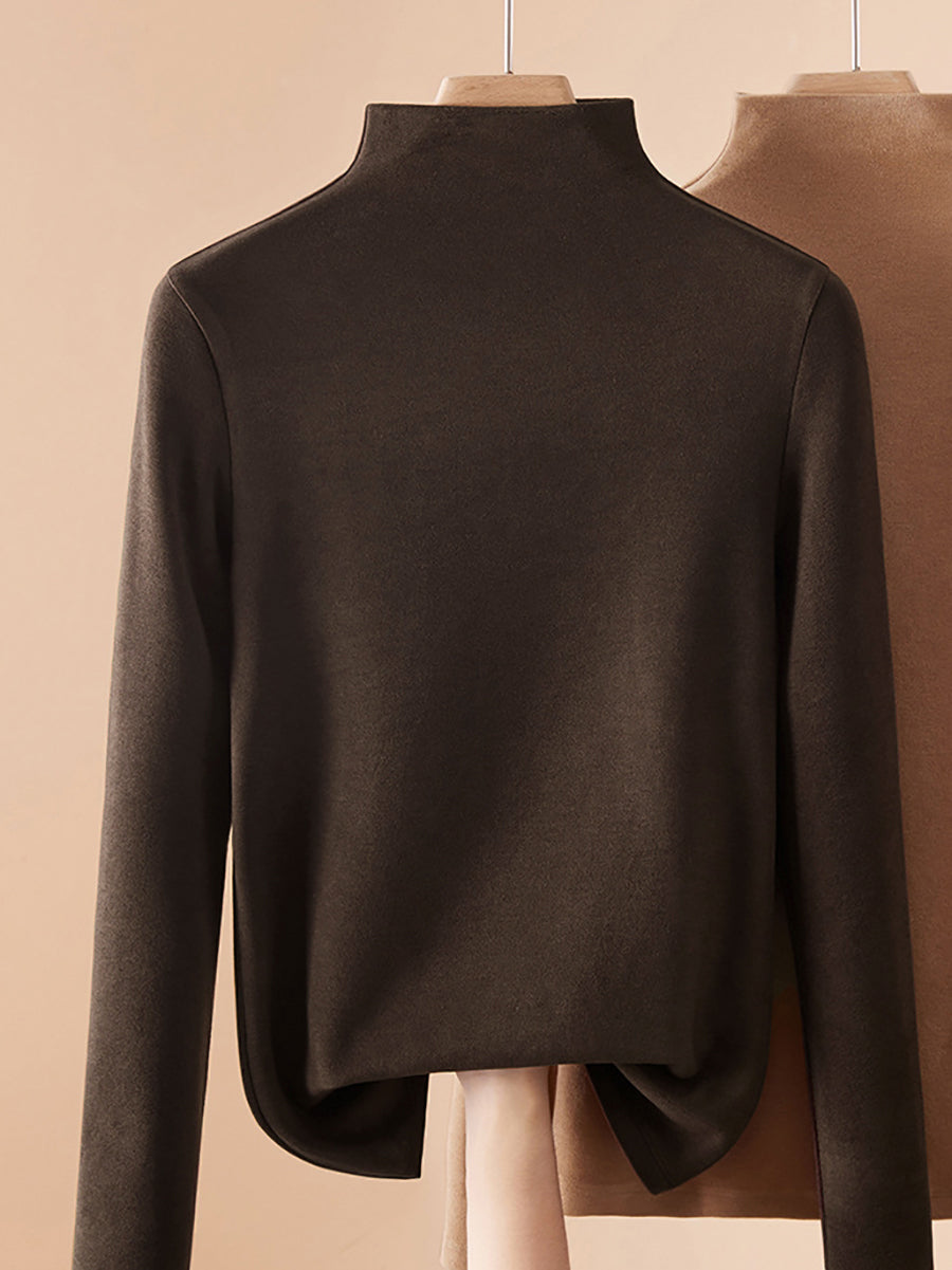 Women Autumn Pure Color Cashmere Half-Turtleneck Blouse