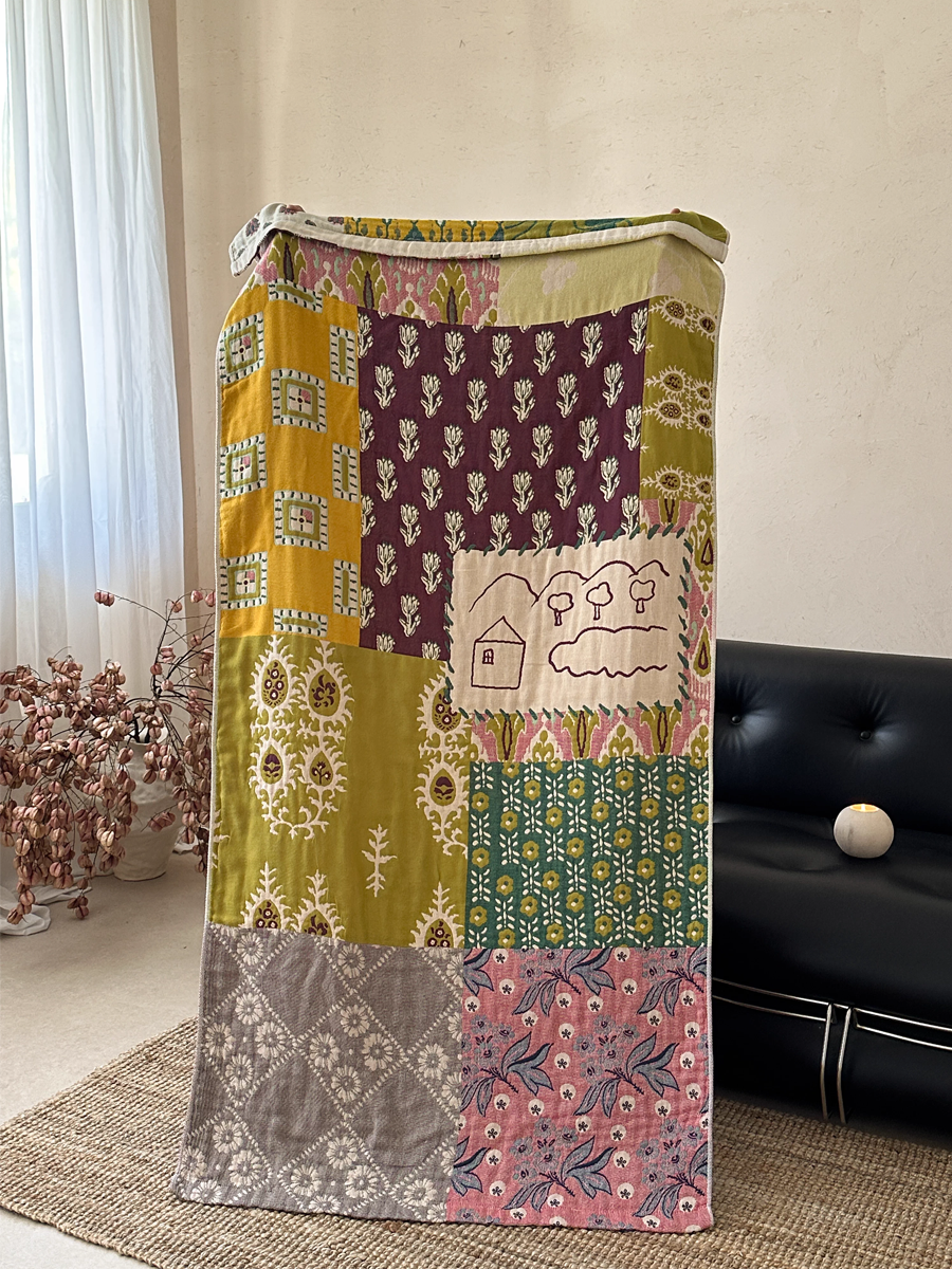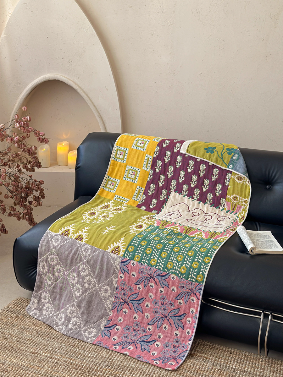 Pastoral Artsy Floral Patchwork Cotton Bath Towel