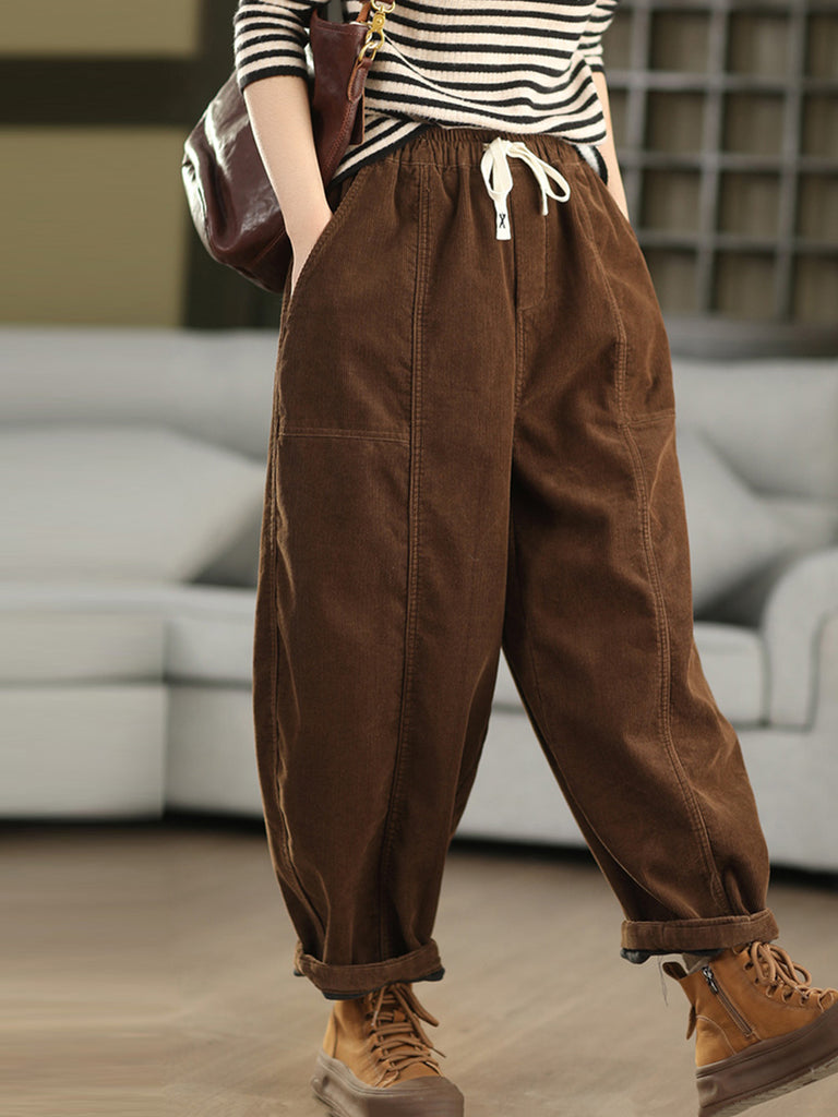 Women Winter Retro Pure Color Corduroy Padded Harem Pants