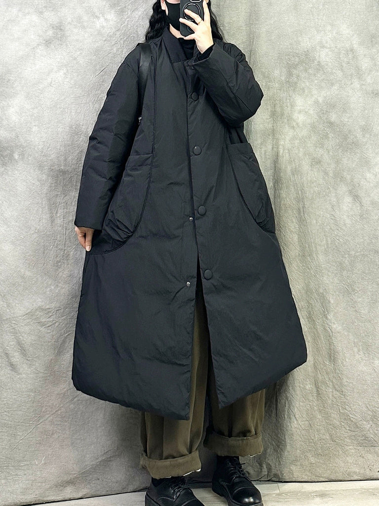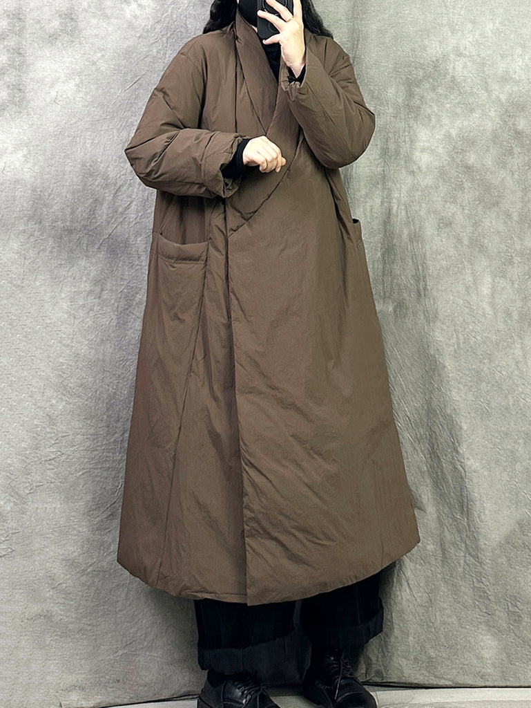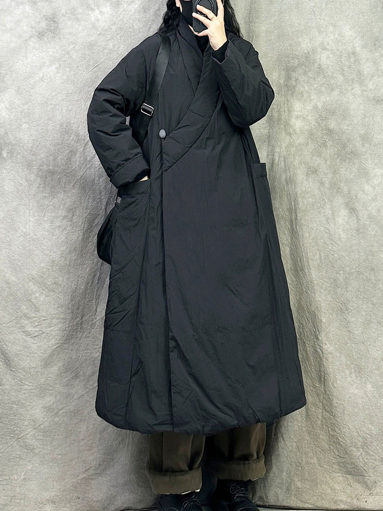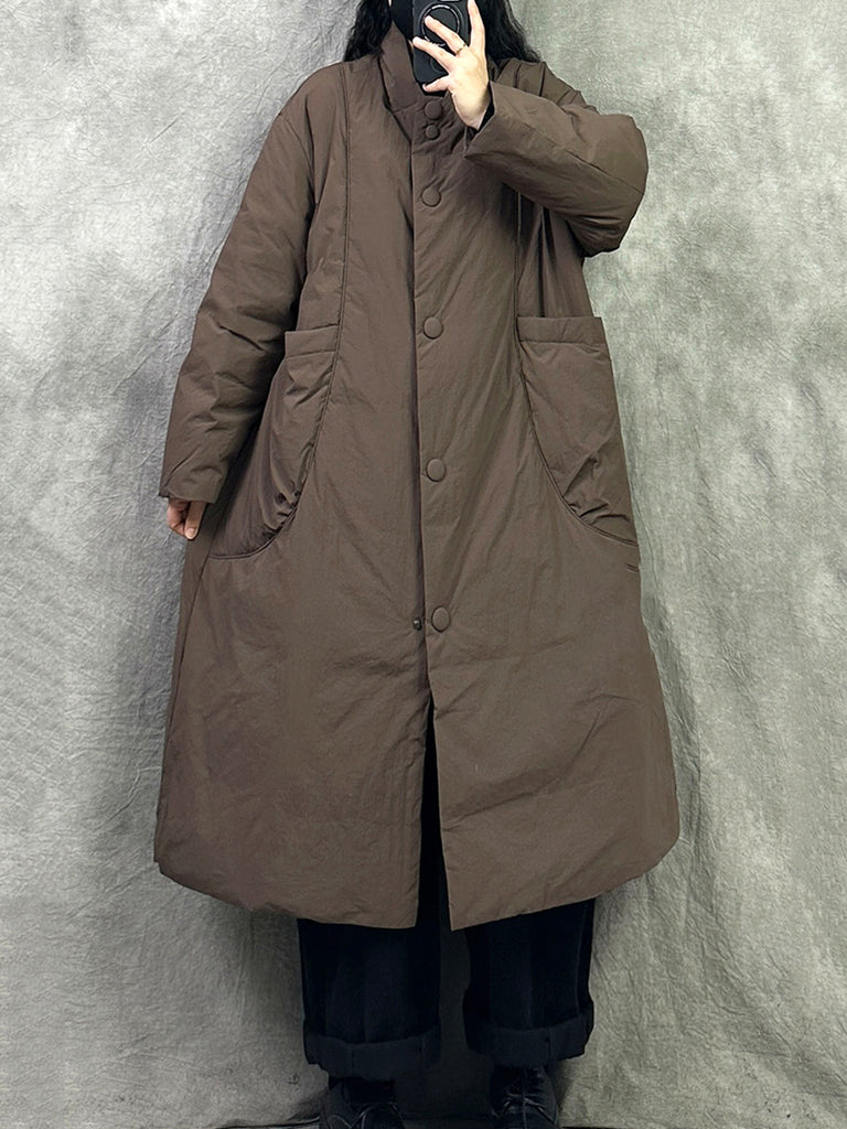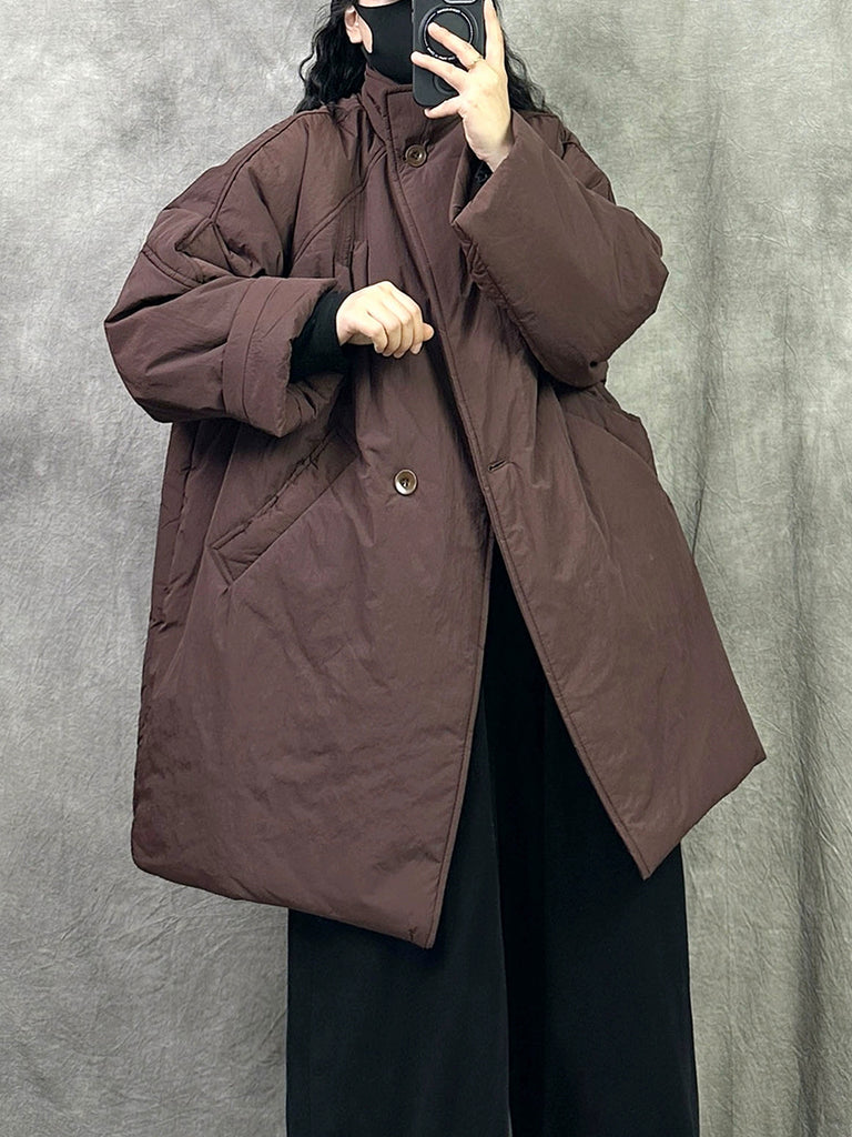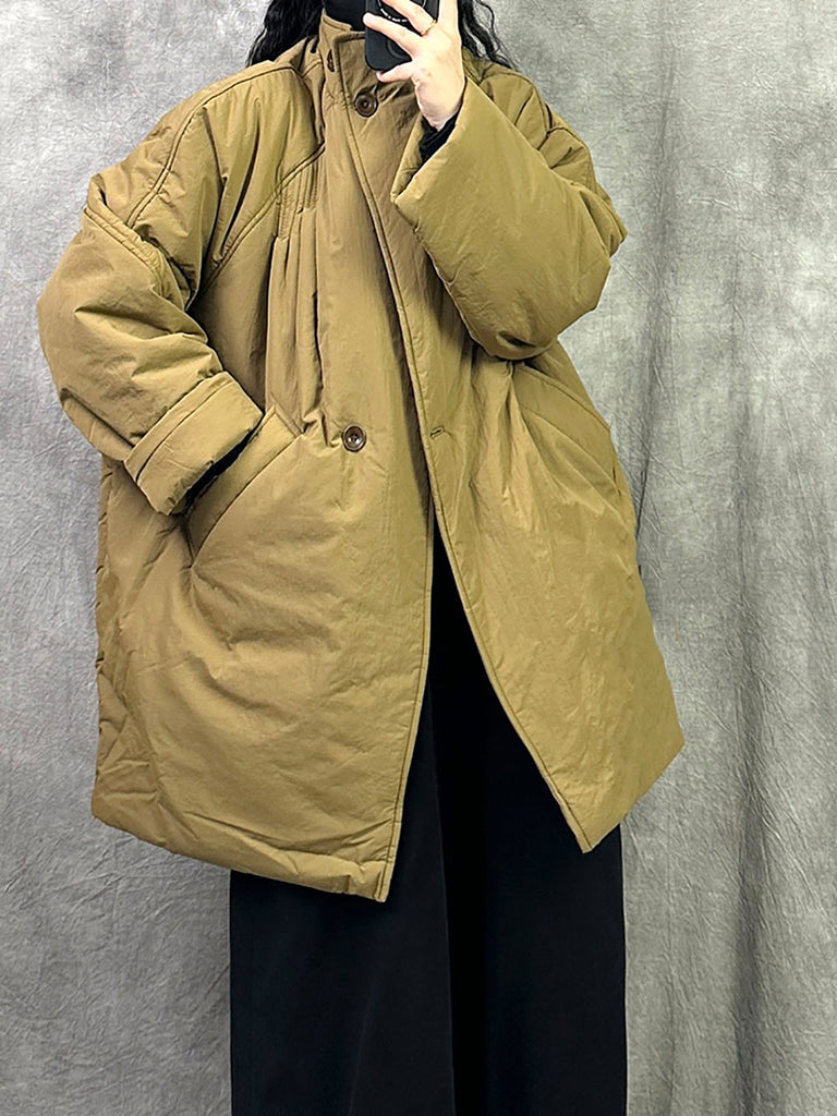 Women Winter Retro Pure Color Turn-down Collar Padded Coat