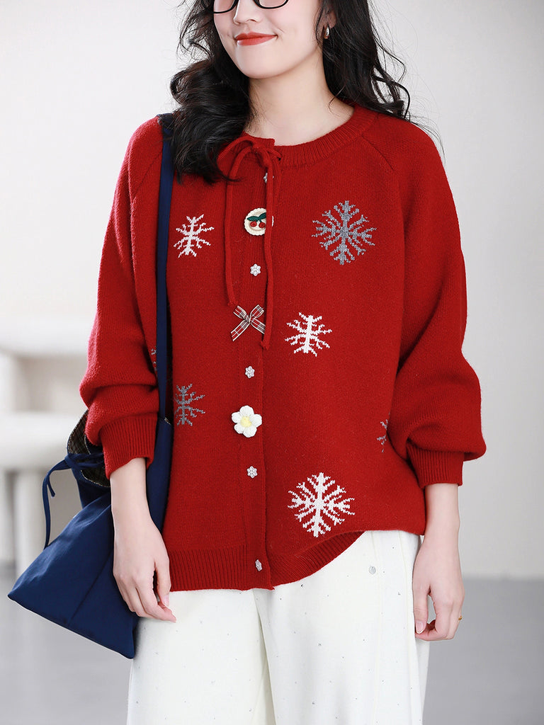 Women Autumn Chirstmas Snowflake O-Neck Sweater