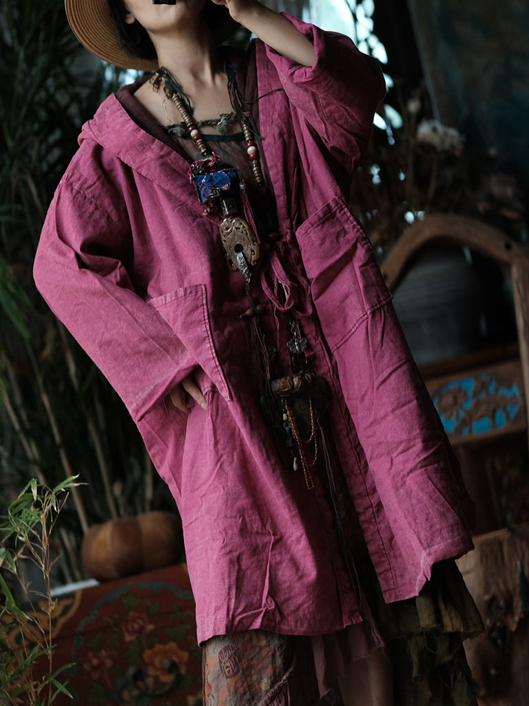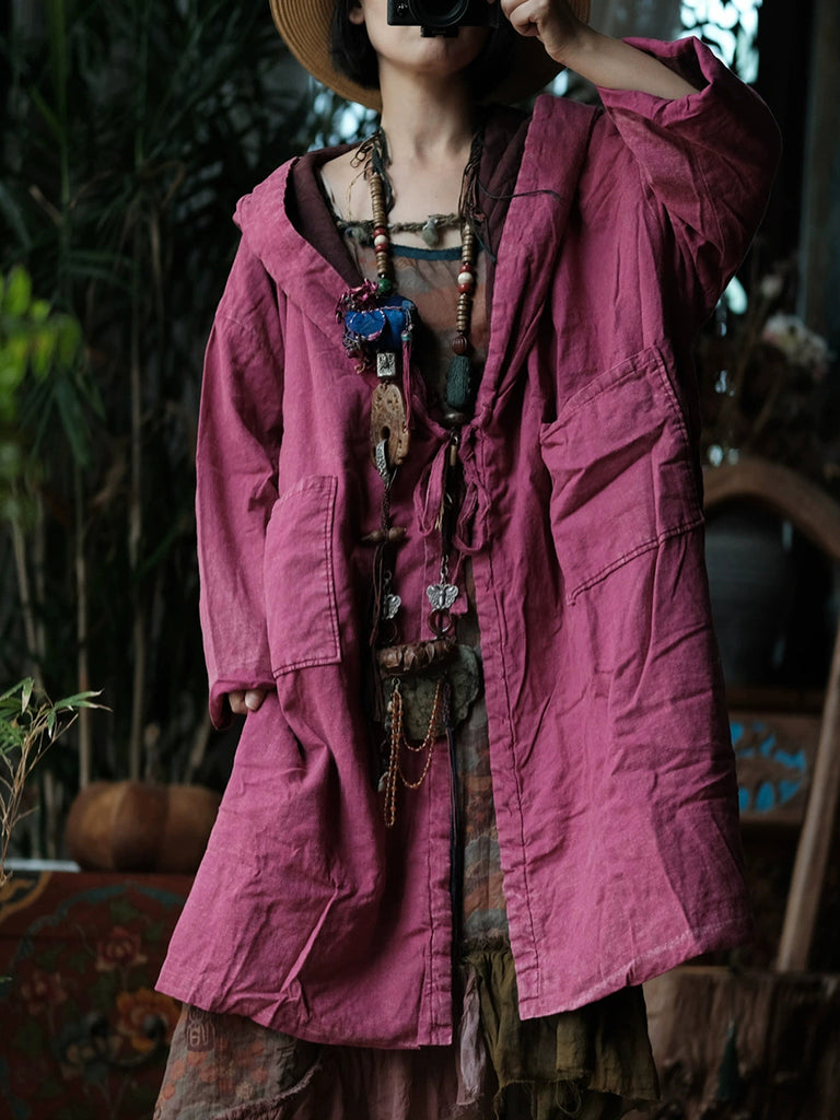 Women Winter Casual Pure Color Hooded Fleece Coat