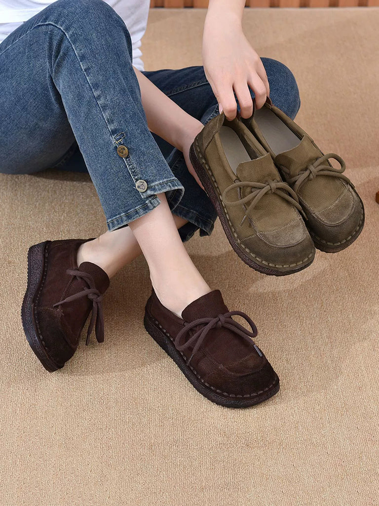 Women Vintage Genuine Leather Spliced Flat Shoes