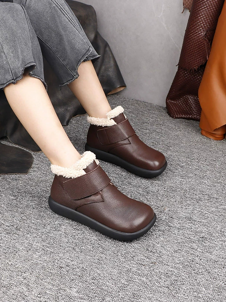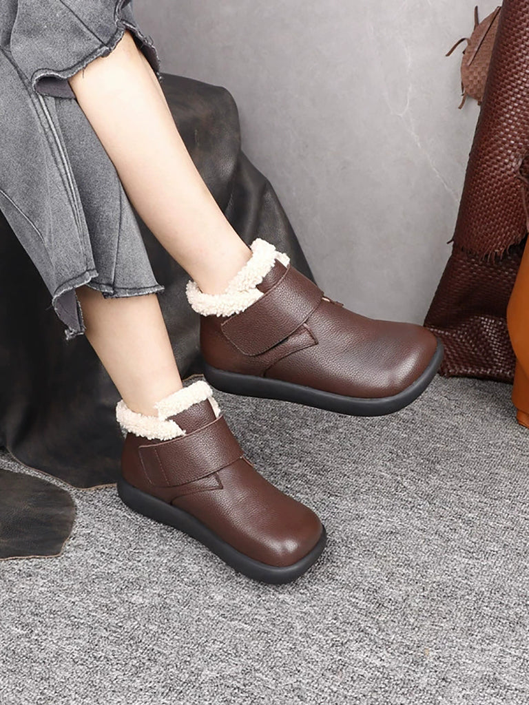 Women Casual Vintage Genuine Leather Fleece-lined Boots