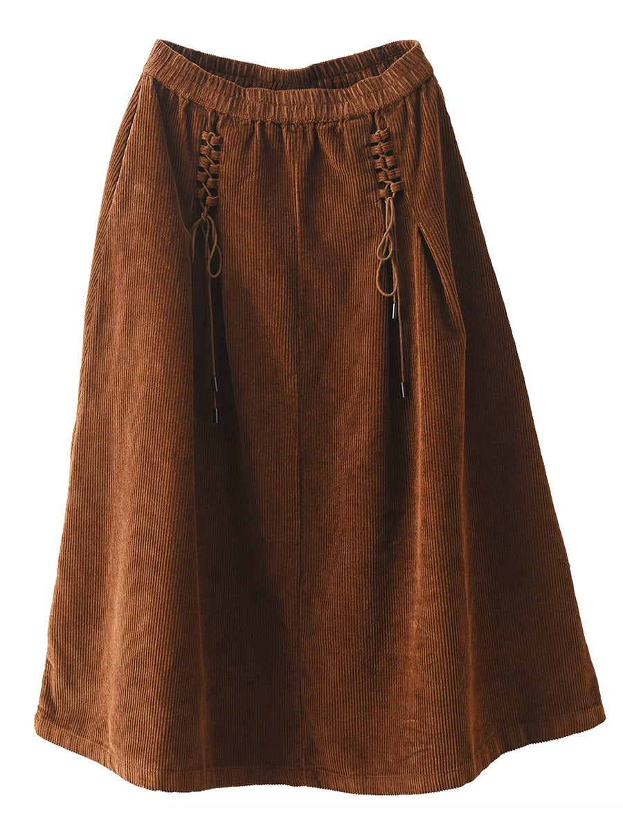 Plus Size Women Autumn Retro Strap Corduroy A-Shape Skirt