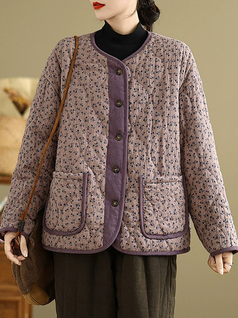 Women Winter Pure Color Fleece Spliced Cotton O-Neck Coat