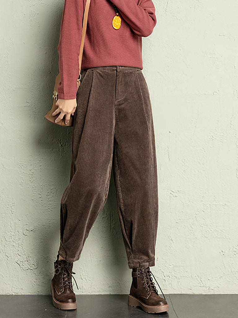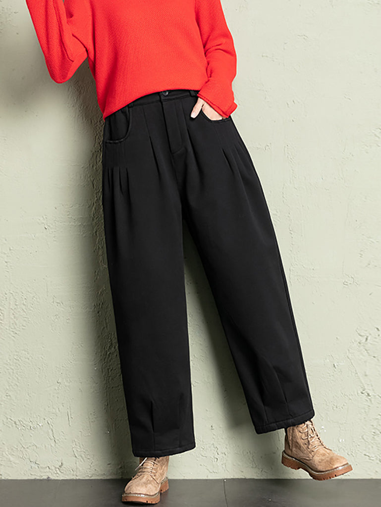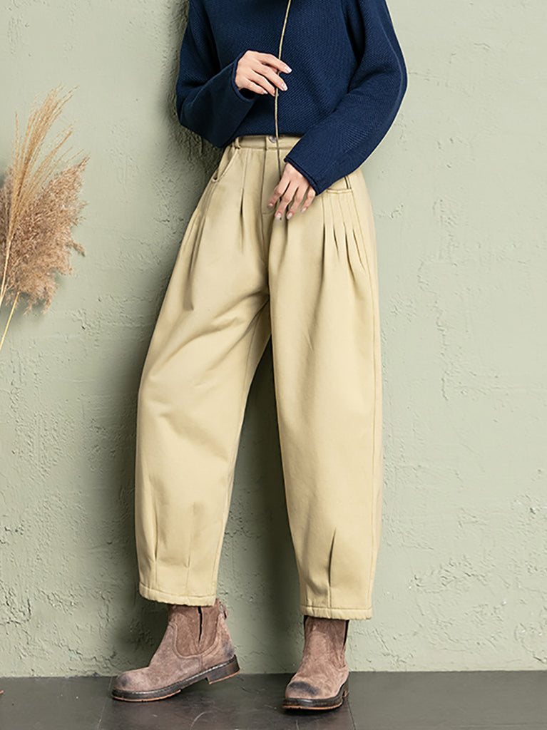 Women Winter Pure Color Fleece-lined 100%Cotton Harem Pants