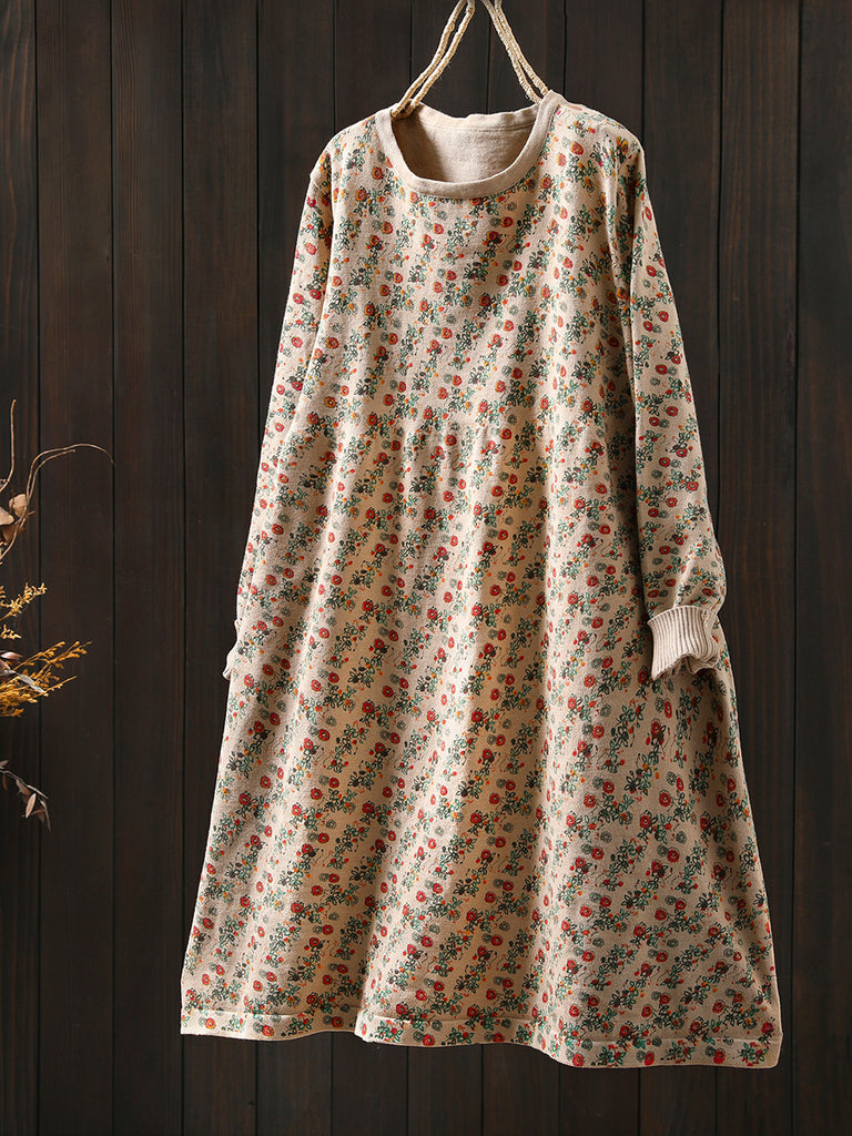 Women Autumn Vintage Floral O-Neck Knitted Dress