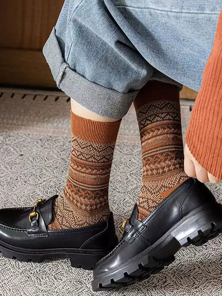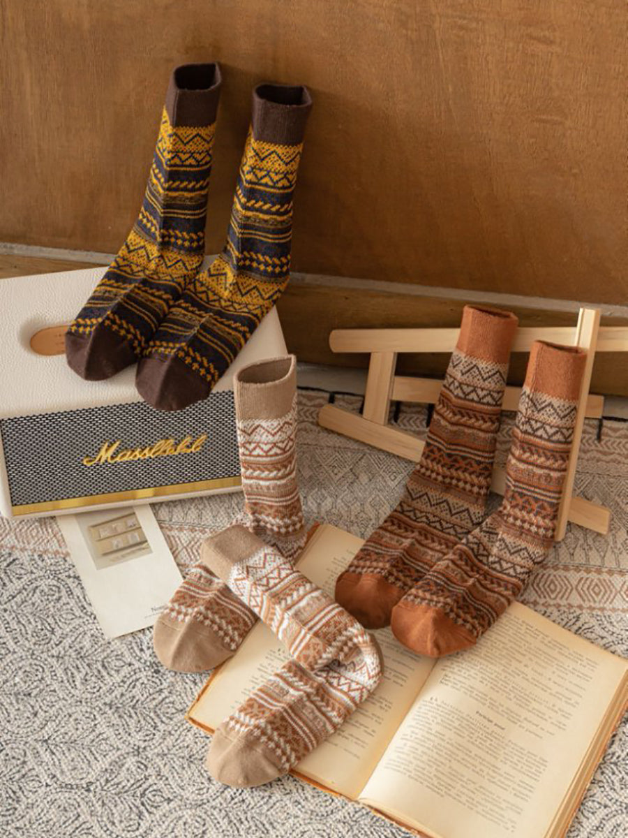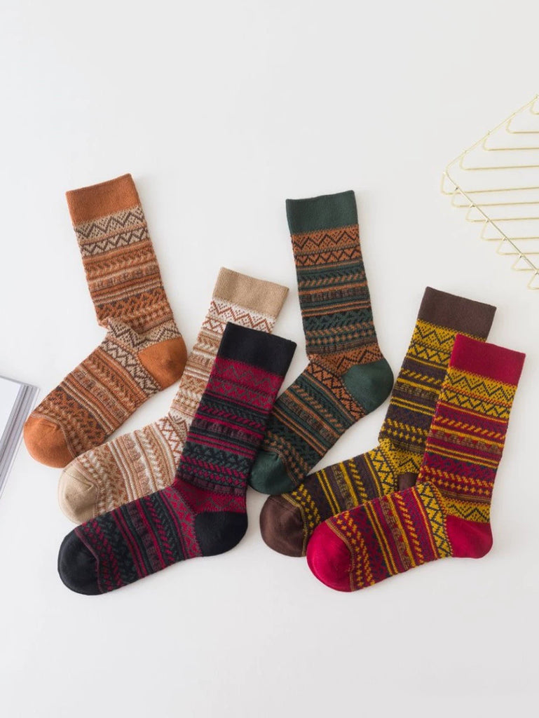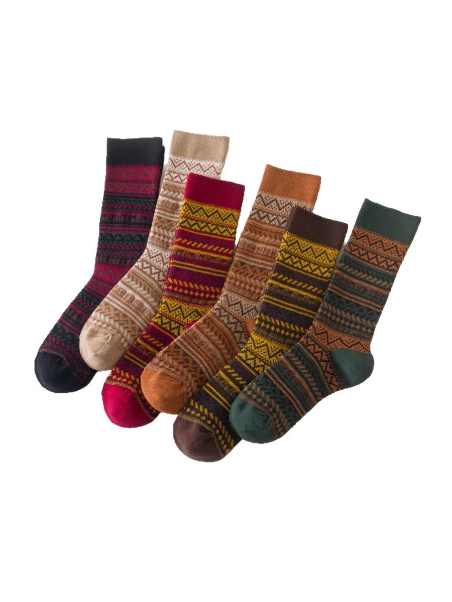 6 Pairs Women Winter Stripe Mid Heel Socks