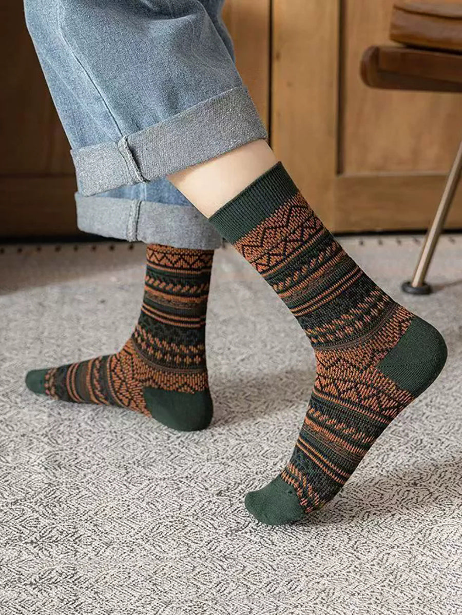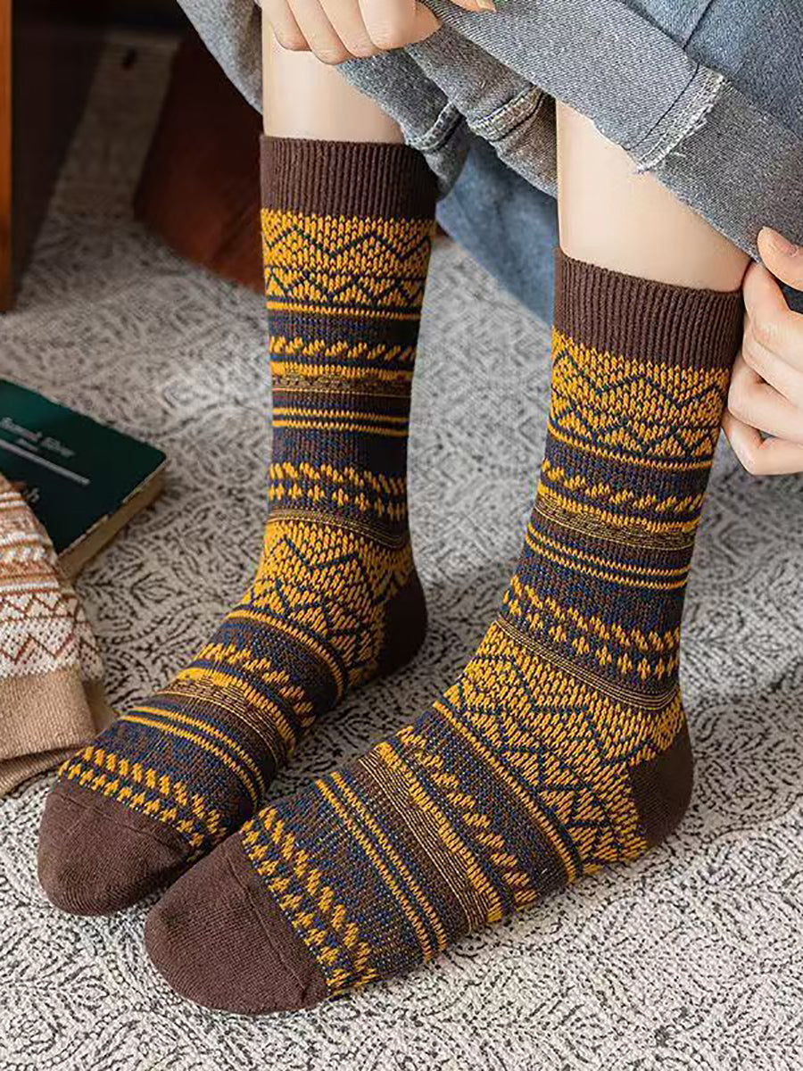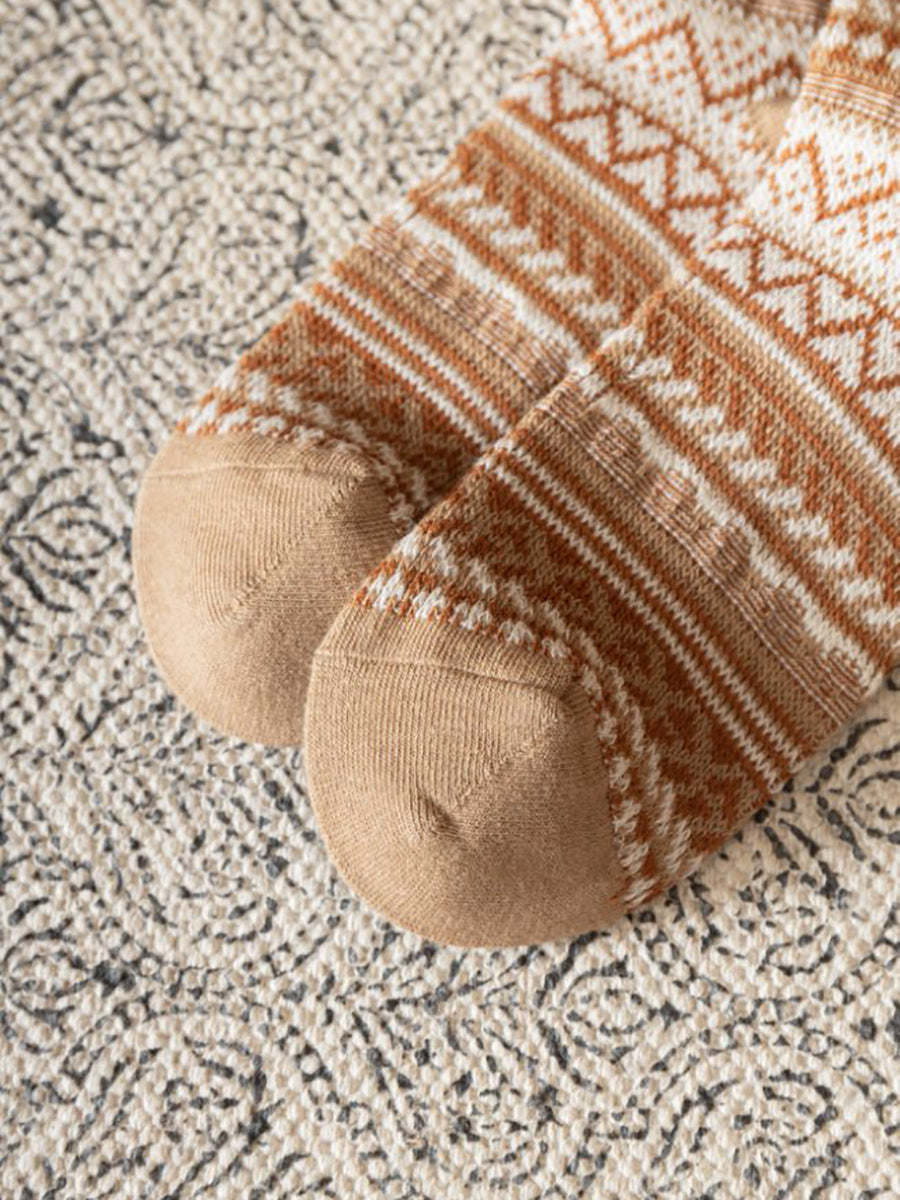 6 Pairs Women Winter Stripe Mid Heel Socks