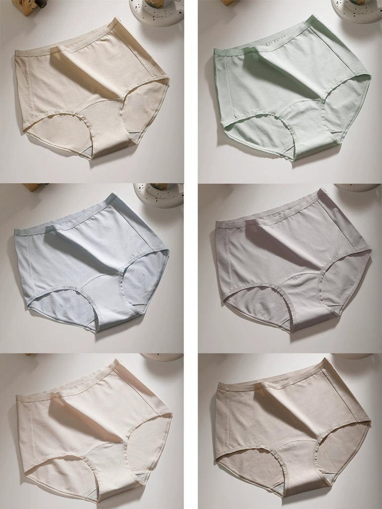 6 Pieces Women Winter Pure Color High Waist Underwear